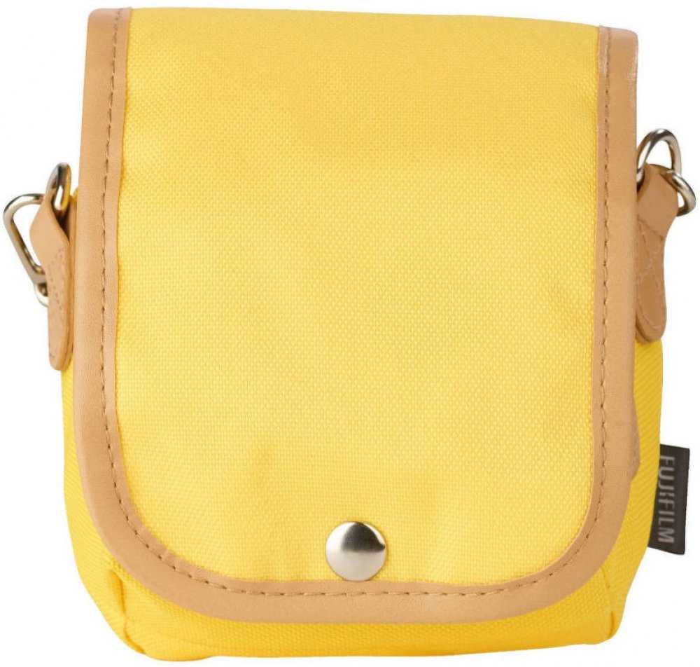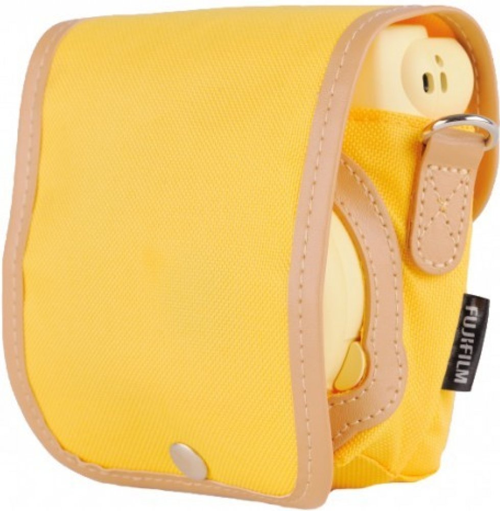 Ochranné pouzdro na fotoaparát s okamžitou fotografií Fujifilm Instax Mini 8, v žlté barvě, s hnědými detaily. Originální doplněk který chrání vaše zařízení před nečistotami a škrábanci. Stylové pouzdro vhodné na cesty. Pro focení nemusíte fotoaparát vybírat z pouzdra, stačí nepo dobné vrchní poklop a můžete okamžitě zachycovat důležité momenty.