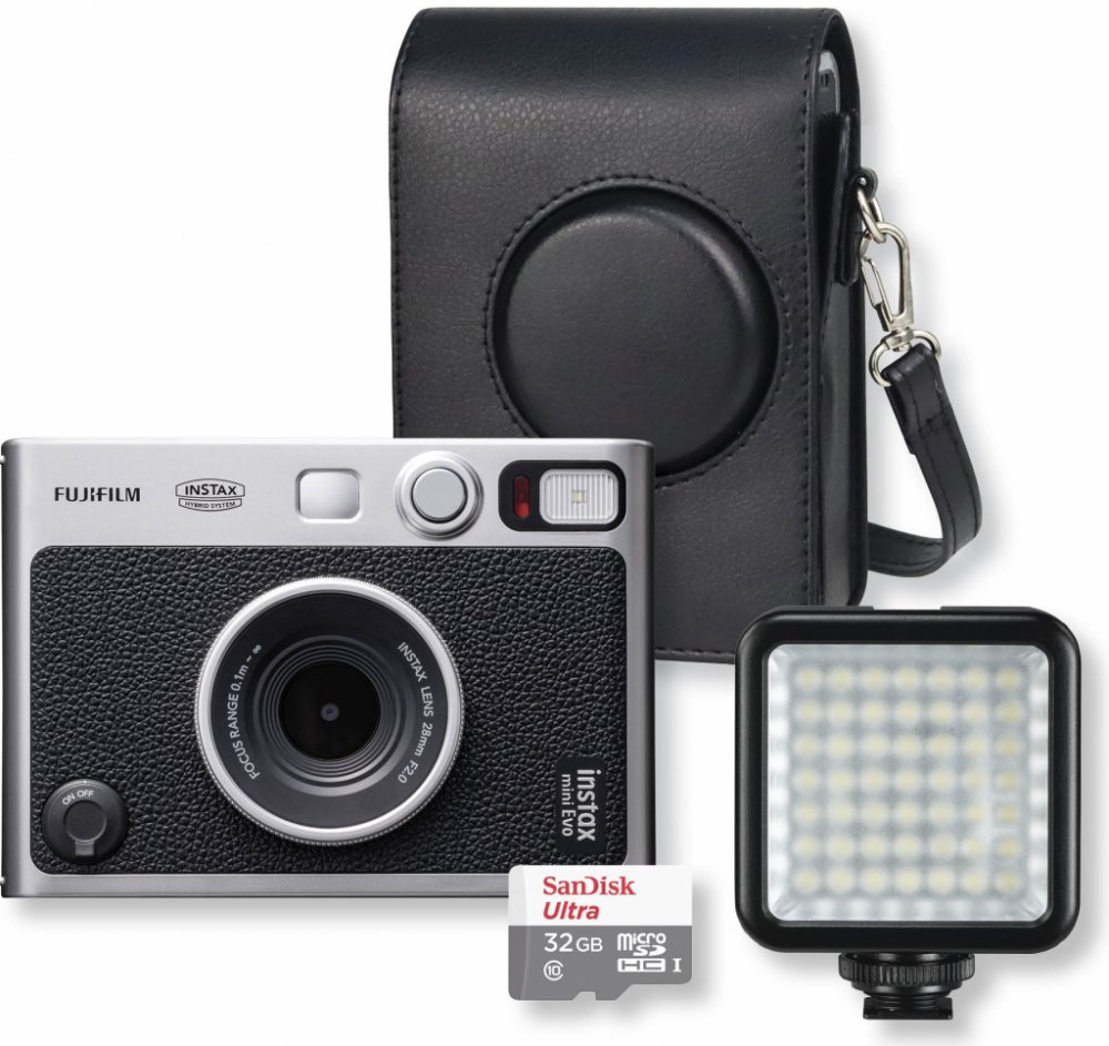 Fujifilm Instax Mini Evo Black START set (fotoaparát, LED světlo, pouzdro, karta)
