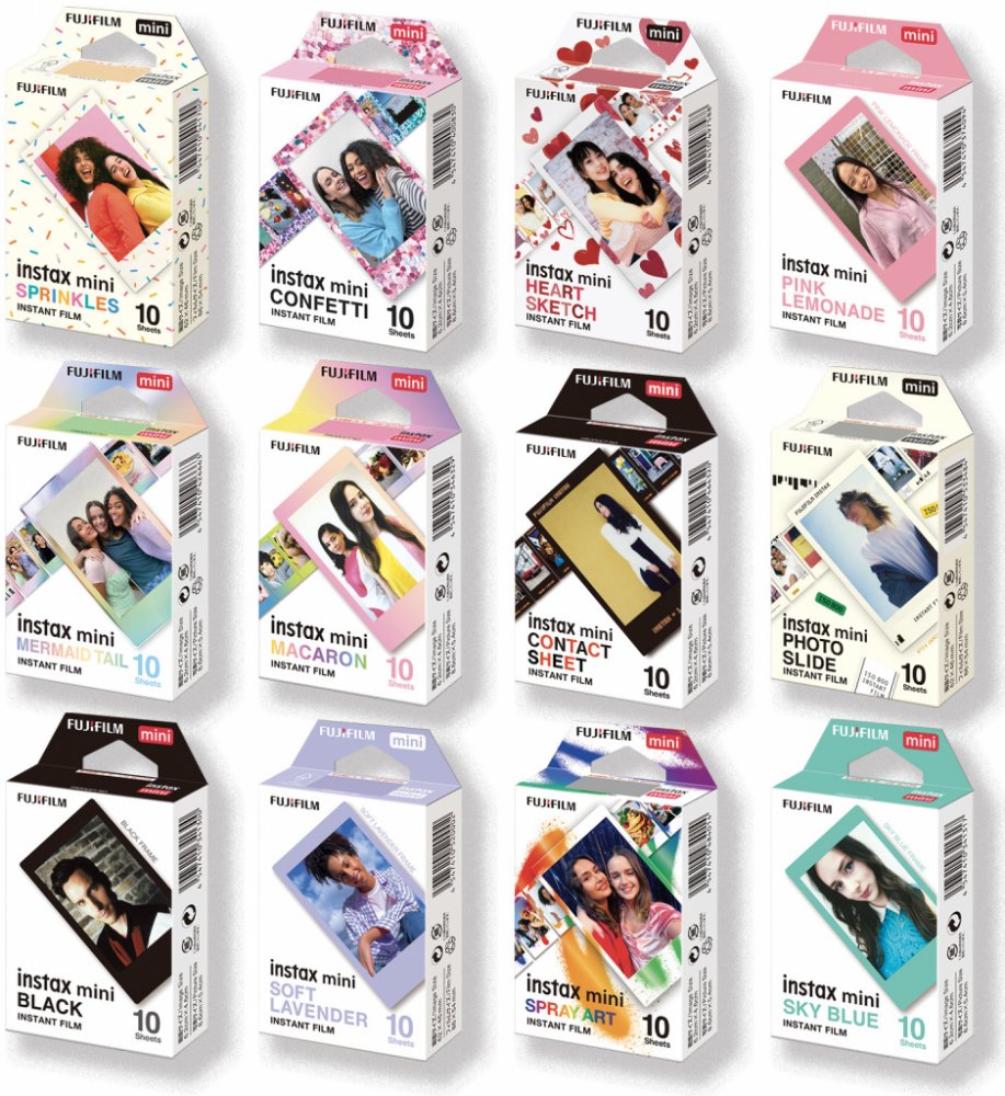 Speciální edice originálních filmů Instax Mini s dekorovaným rámečkem. Set obsahuje 12 balení těchto speciálních balení filmu