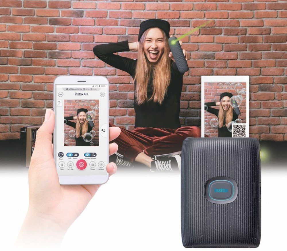 Nový Instax Mini Link 2 je vybaven interaktivní funkcí instaxAiR, která uživatelům umožňuje plně personalizovat své fotografie. Díky této funkci pro kreslení „ve vzduchu“ lze do fotografií přidávat grafiku prostřednictvím aplikace Instax Mini Link. Ať už se rozhodnete nakreslit deštník, čtverečky nebo třeba srdce, k dispozici jsou různé typy štětce (mohou to být bubliny, okvětní lístky, neon, barva ve spreji nebo třpytky). Jednoduše vezměte do ruky svůj Instax Mini Link 2, stiskněte funkční tlačítko horní straně tiskárny, namiřte boční LED diodu a začněte kreslit ve vzduchu. To, co nakreslíte ve vzduchu, se následně zobrazí i v náhledu tisku v aplikaci. Můžete dokonce nahrát video kresby a sdílet tento okamžik jako QR kód, který se objeví na vytisknuté fotce. QR kód můžete naskenovat pomocí chytrého telefonu a video si pak prohlédnout, stáhnout nebo sdílet na sociálních sítích.