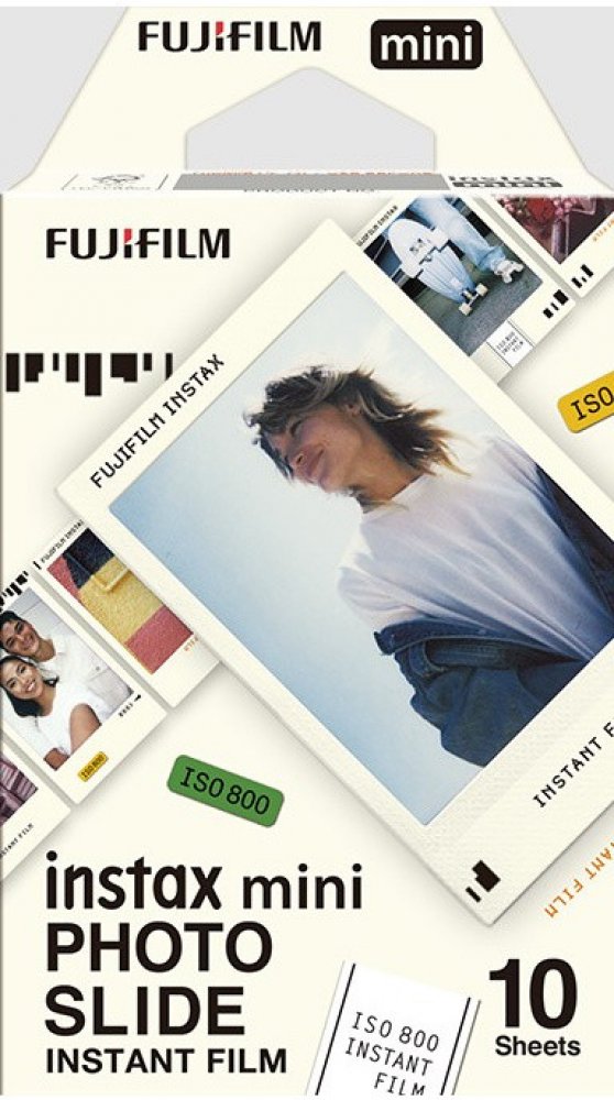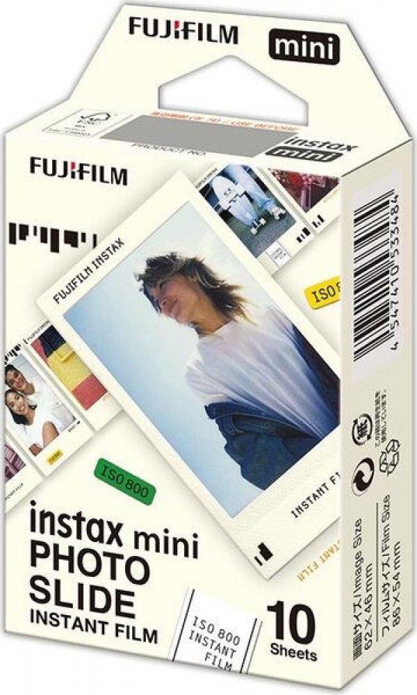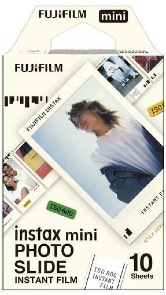 - Typ filmu: barevný instantní film - Počet snímků v balení: 10 - Kompatibilita: všechny Instax Mini fotoaparáty a tiskárny - Design rámečku: slonovinový s grafickými symboly (Photo Slide) - Citlivost (ISO): 800 - Rozměr filmu: 54 × 86 mm - Rozměr snímku: 46 × 62 mm - Povrch: lesklý - Vývoj fotografie: cca 90 sekund - Teplota použití/skladování: 5–40 °C - Teplota chromatičnosti: 5500 K