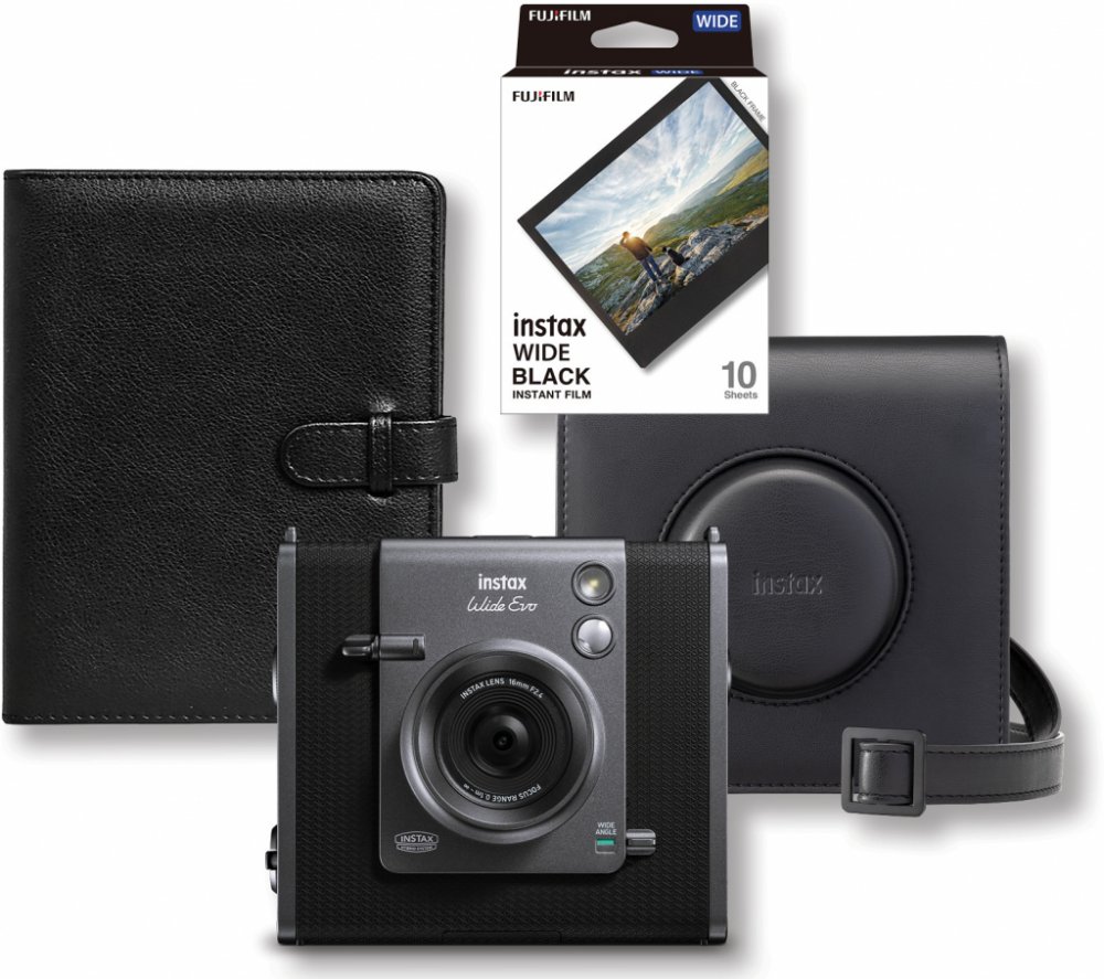 Fujifilm instax WIDE Evo™ je analogový fotoaparát pro okamžitou fotografii a digitální přístroj současně.Díky tomuto unikátnímu spojení disponuje WIDE Evo™ nejen vestavěnou tiskárnou (pro filmy s označením instax WIDE), ale i velkým 3.5" LCD displejem, 1/3" CMOS snímačem, microSD slotem pro ukládání fotografií na paměťovou kartu v rozlišení 16 Mpx a dalšími výhodami, které umožňují nejen fotografie vyvolat ihned po stisknutí spouště, ale také snímky ukládat, procházet je, opakovaně tisknout nebo je odesílat do smartphonu a sdílet je s přáteli digitálně.