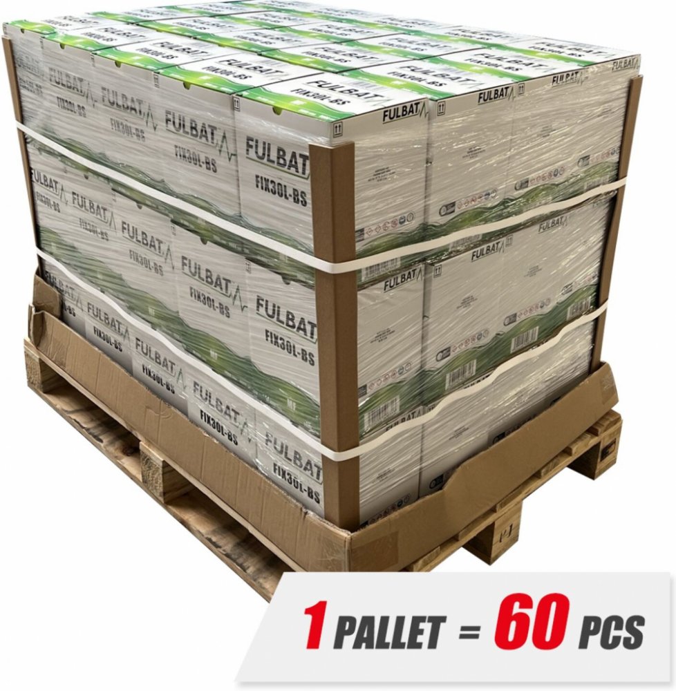 Paleta 60 ks FULBAT Baterie 12V/30Ah FIX30L-BS (YTX30L-BS) SEGWAY, CF MOTO, POLARIS, HARLEY DAVIDSO, Rozměry palety: 80 x 114 x 90 cm (D x Š x V), Hmotnost palety: 619 kg