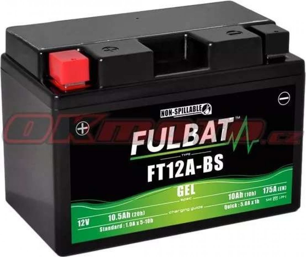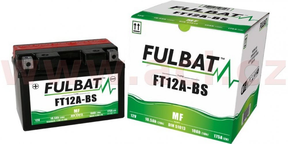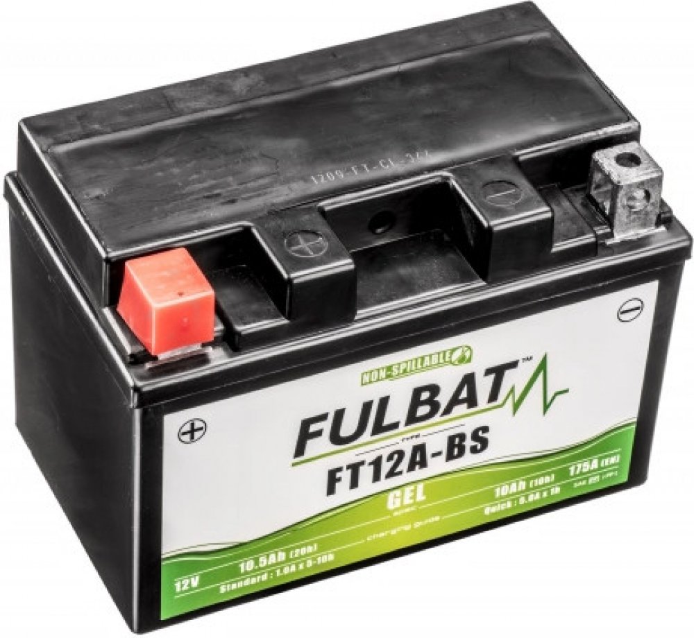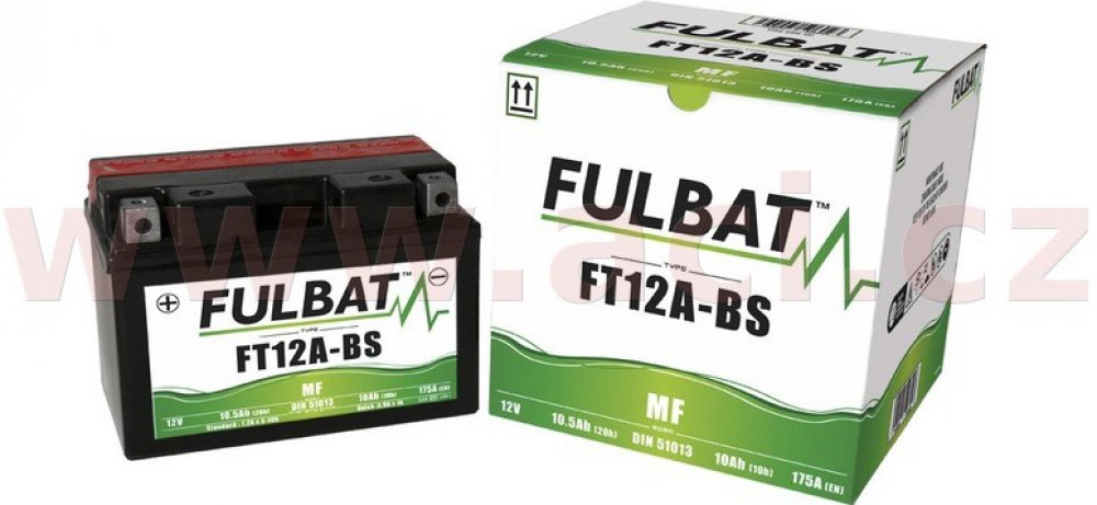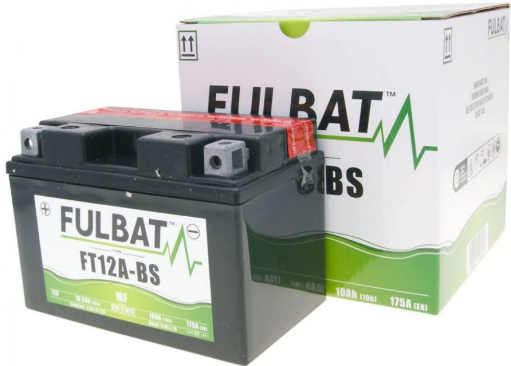 Bezúdržbový akumulátor (VRLA, AGM za sucha nabitý), značení JIS YT12A-BS, 12V 10Ah CCA 175 A, Rozměry 150x88x105mm, MF (Maintainance Free) FULBAT - Bezúdržbové baterie