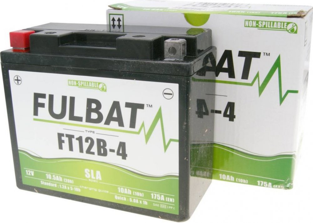 SLA FULBAT Stejná technologie jako v případě MF Fulbat. Je to tedy bezúdržbová baterie, lidově často zvaná gelovka. Patrně proto, že uvnitř najdeme absorbční materiál - rouno, neboli AGM (Absorbed Glass Material), do kterého je kyselina napuštěna. Kontrukce je celkově modernější, takže se méně a pomaleji vybíjí. Umožňuje více životních cyklů - tzn, lze ji vícekrát vybít a nabít, tzn, že vydrží déle, než konvenční DRY baterie. Lépe také odolává výkyvům počasí. Jediný rozdíl oproti MF Fulbat je v tom, že baterie SLA je již naplněná elektrolytem (kyselinou) z výroby. To má několik výhod. A jednu nevýhodu. Hlavní výhoda je, že prostě sáhnete do regálu, nasadíte, přitáhnete pár šroubů a můžete jet. Nemusíte nic dolévat, doplňovat. Jelikož je naplněná již z výroby, je dokonale utěsněná a proto ji klidně můžete položit na bok. Nevýhodou je skladování, kdy je třeba baterii pravidelně dobíjet. Udržba: Baterie je bezúdržbová. Což znamená, že nemusíte kontrolovat a dolévat elektrolyt. Jako jakoukoli jinou baterii na světě ji ale musíme dobíjet. Zpravidla po 2 měsících nečinnosti. Výhody: Nemusí se aktivovat (nalít elektrolit). Prostě jenom připojíte a jedete. Není třeba kontrolovat a doplňovat hladinu elektrolytu. Lze ji mírně naklánět až dokonce položit na bok, aniž by se kyselina. Nevýhody: Nelze ji skladovat bez potřebné péče, tedy dobíjení..