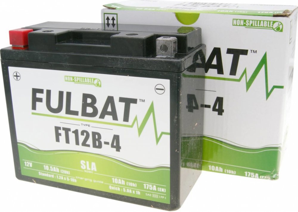 SLA FULBATStejná technologie jako v případě MF Fulbat. Je to tedy bezúdržbová baterie, lidově často zvaná gelovka. Patrně proto, že uvnitř najdeme absorbční materiál - rouno, neboli AGM (Absorbed Glass Material), do kterého je kyselina napuštěna.Kontrukce je celkově modernější, takže se méně a pomaleji vybíjí. Umožňuje více životních cyklů - tzn, lze ji vícekrát vybít a nabít, tzn, že vydrží déle, než konvenční DRY baterie. Lépe také odolává výkyvům počasí.Jediný rozdíl oproti MF Fulbat je v tom, že baterie SLA je již naplněná elektrolytem (kyselinou) z výroby. To má několik výhod. A jednu nevýhodu. Hlavní výhoda je, že prostě sáhnete do regálu, nasadíte, přitáhnete pár šroubů a můžete jet. Nemusíte nic dolévat, doplňovat. Jelikož je naplněná již z výroby, je dokonale utěsněná a proto ji klidně můžete položit na bok. Nevýhodou je skladování, kdy je třeba baterii pravidelně dobíjet.Udržba:Baterie je bezúdržbová. Což znamená, že nemusíte kontrolovat a dolévat elektrolyt. Jako jakoukoli jinou baterii na světě ji ale musíme dobíjet. Zpravidla po 2 měsících nečinnosti. Výhody:Nemusí se aktivovat (nalít elektrolit). Prostě jenom připojíte a jedete.Není třeba kontrolovat a doplňovat hladinu elektrolytu.Lze ji mírně naklánět až dokonce položit na bok, aniž by se kyselina. Nevýhody:Nelze ji skladovat bez potřebné péče, tedy dobíjení..
