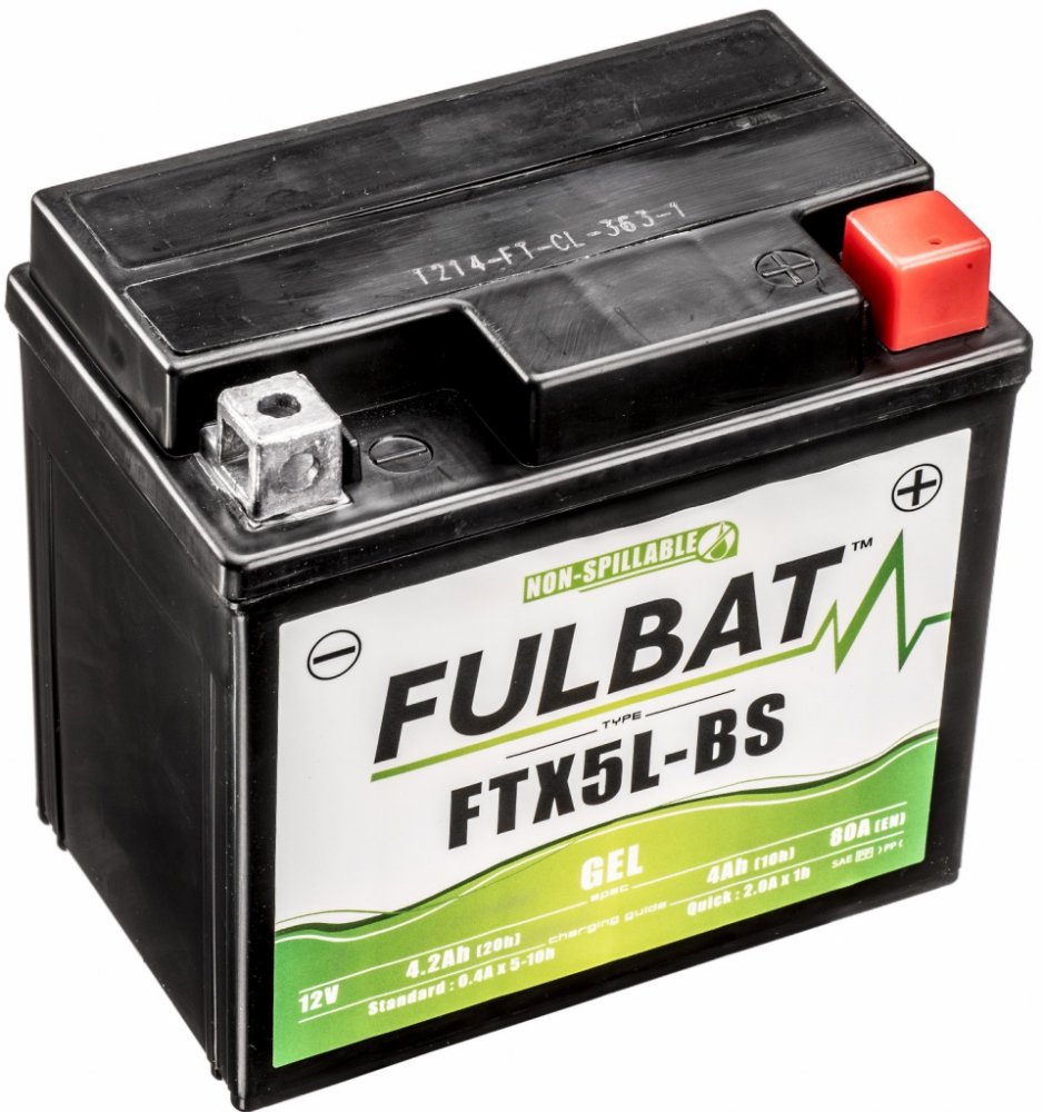 Označení FTX5L-BS / FTZ6S GEL Kompatibilita: YTX5L-BS, YTZ6SNapětí 12VKapacita 4AhStartovací proud 80ARozměry 113 x 70 x 105 mmPólování: - / + (plus vpravo)Váha 1,89 kgnová inovativní GEL technologie, je možno instalovat v poloze na bokupřipravená k okamžitému použití, snadná instalacevhodná do chladného počasíz materiálu odolného proti vibracímodolná proti úniku elektrolytu a samozřejmě bezúdržbo...
