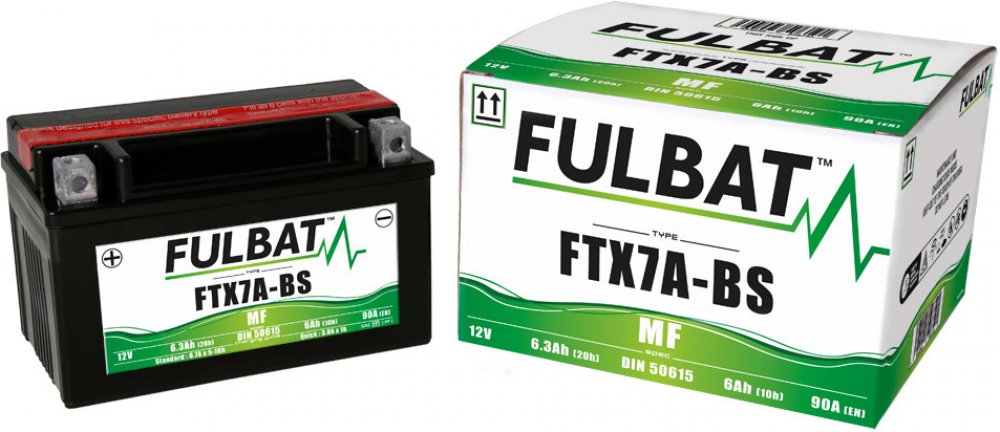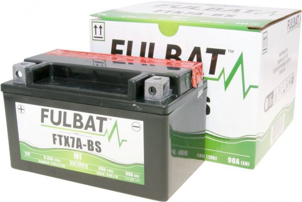 Bezúdržbový akumulátor (VRLA, AGM za sucha nabitý), značení JIS YTX7A-BS, 12V 6Ah CCA 90 A, Rozměry 150x87x93mm, MF (Maintainance Free) FULBAT - Bezúdržbové baterie