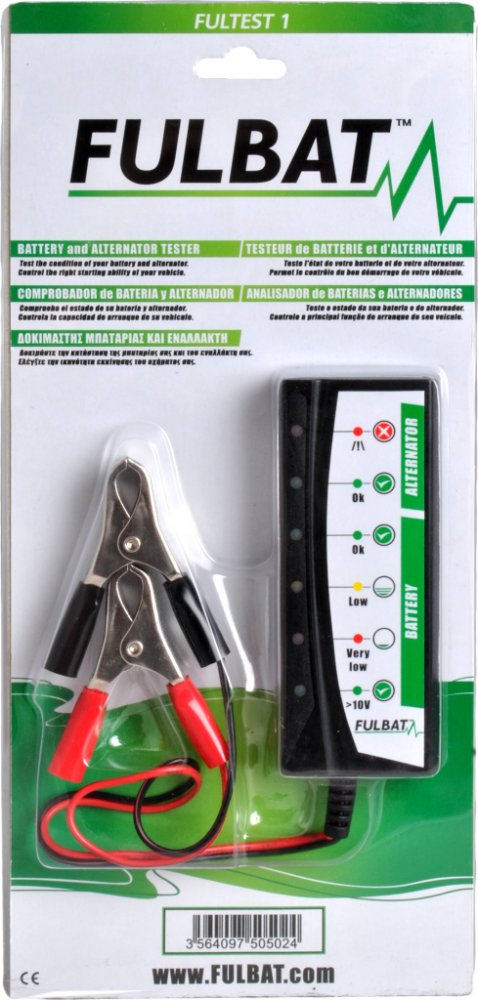 Tester FULBAT Fultest 1 umožní snadnou kontrolu stavu nabití 12V olověných baterií. Vyrobený je z velmi kvalitních materiálů a jednoduše se používá. Zobrazuje 3 úrovně stavů nabití. Pomocí testeru FULBAT Fultest 1 spolehlivě ověříte stav nabití baterie. Klíčové vlastnosti testeru FULBAT Fultest 1Tester určený pro kontrolu stavu nabití 12V olověných bateriíVyrobený je z velmi kvalitních materiálůJednoduše se používáTester FULBAT Fultest 1 zobrazuje 3 úrovně stavů nabitíBarevné provedení: černo-zelené