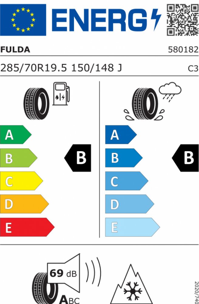 Fulda R19,5 285 70 150 J (100 km/h) celoroční 44.05 kg návěsová regionální B B A 531160