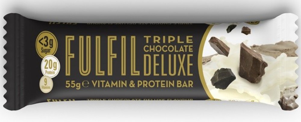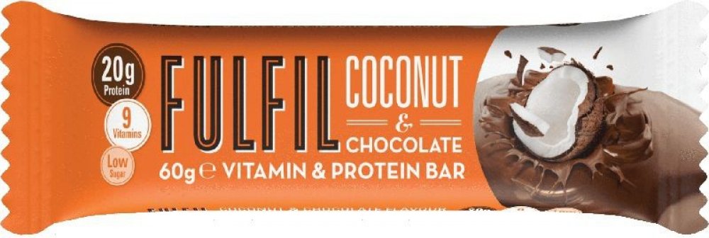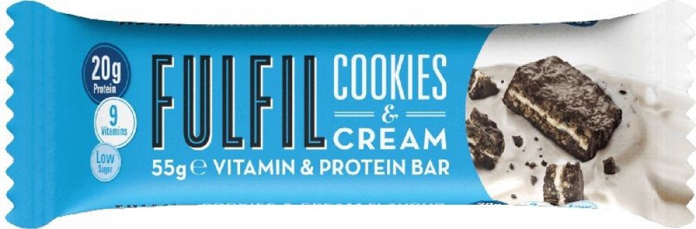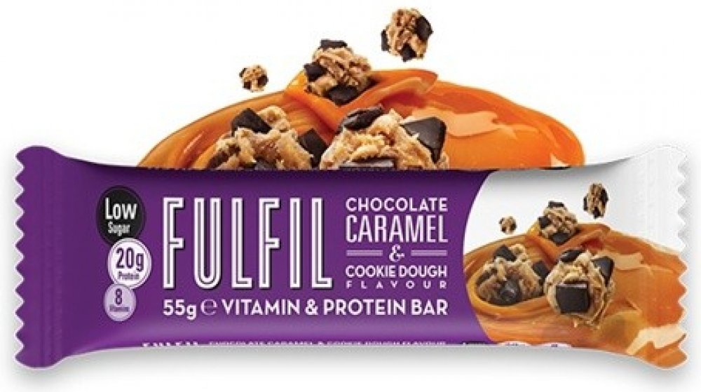 Fulfil Vitamin & Protein Bar - low carb proteinová tyčinka s přidanými vitamíny Fulfil Vitamin & Protein Bar představuje nízkosacharidovou proteinovou tyčinku s přidanými vitamíny. V jedné tyčince se dočkáme 20 g bílkovin a 100 % doporučené denní dávky 9 různých vitamínů. Vybrat si můžete například z karamelové tyčinky s arašídy obalené v mléčné čokoládě, čokoládové tyčinky se šťavnatým kokosem či klasické cookies. To vše při zachování velmi nízkého podílu cukru! Fulfil Vitamin & Protein Bar v bodech: proteinová tyčinka s nízkým obsahem cukru obsahuje 9 přidaných vitamínů 100 % doporučené denní dávky vitamínů v dávce