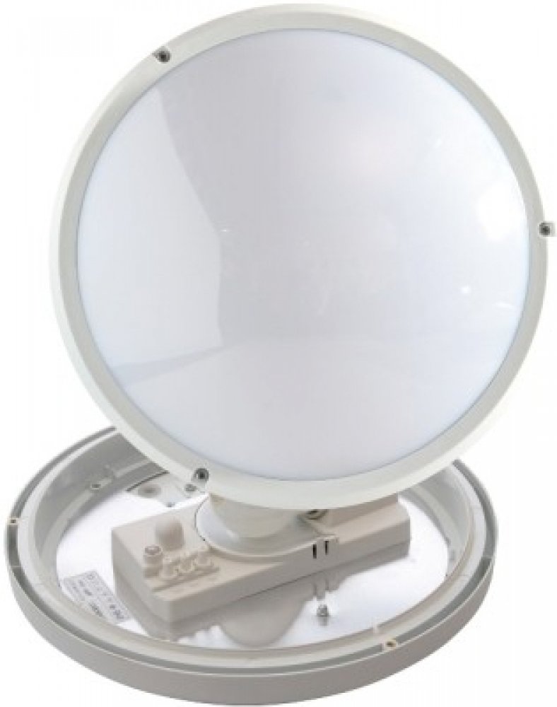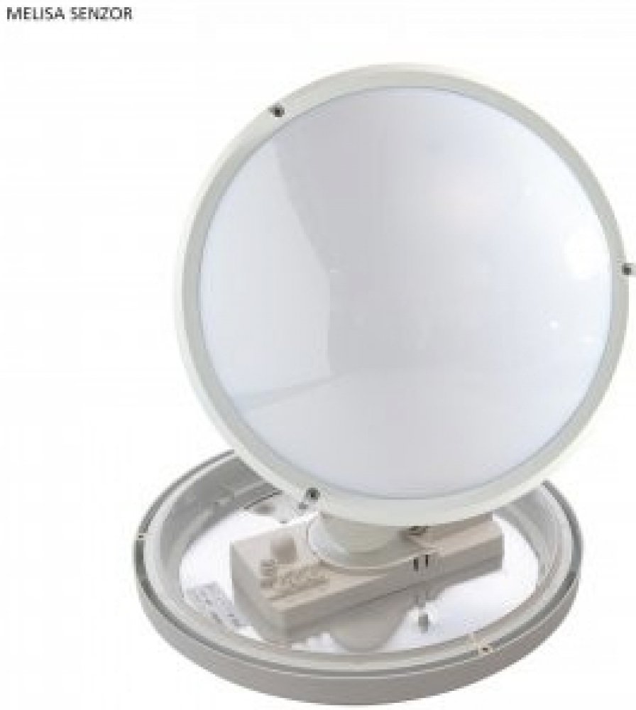Přisazené, venkovní, stropní nebo nástěnné svítidlo s plastovým kulatým stínítkem a bílým rámečkem Svítidlo je osazeno mikrovlnným pohybovým senzorem s 360 stupňovým úhlem detekce pohybu. Plastové opálové stínítko zajišťuje ideání rozptyl světla a zabraňuje oslnění. Rozměry: průměr 335mm, výška 100mm