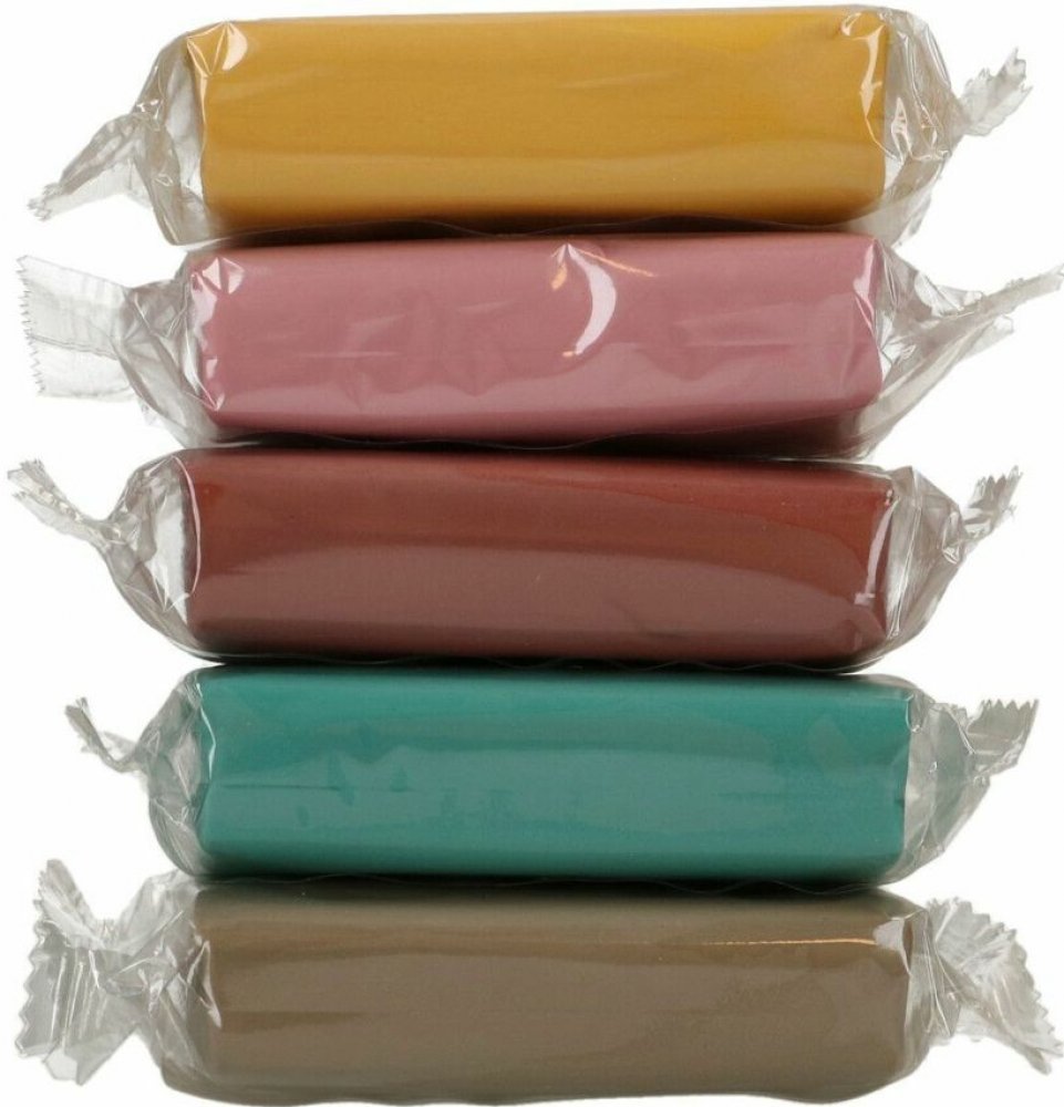 Složení: cukr, rostlinný olej (palmový), glukózový sirup, zvlhčující látka E422, emulgátor E471, zahušťovadlo E415+E466, přírodní aroma, konzervant E200, regulátor kyselosti E330, barviva: E153a+E129+E133+E102+E172. Barviva E102 a E129 mohou nepříznivě ovlivňovat činnost a pozornost dětí. Alergeny: mandle.