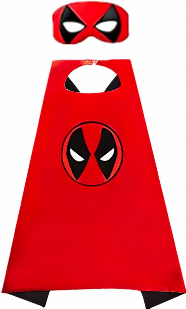 Součástí setu je červený plášť s černým potiskem ikonické Deadpoolovy masky a černá plstěná maska na gumičku pro snadné nošení. Díky jednoduchému zapínání za krkem na suchý zip se plášť pohodlně obléká a skvěle drží i během akčnějších her.
