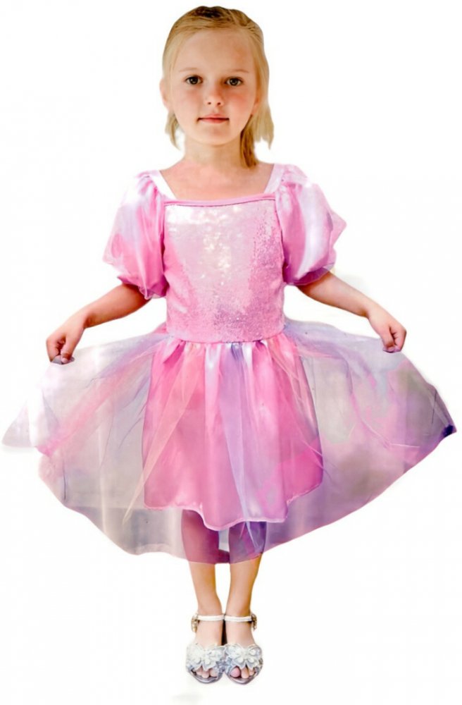 Dětský kostým Růžová princezna promění každou malou slečnu v pohádkovou bytost. Dětský kostým Růžová princezna promění každou malou slečnu v pohádkovou bytost. Díky jemným pastelovým barvám a lesklému vzhledu je ideální volbou na karnevaly, narozeninové oslavy i domácí hraní na princezny.Kostým se skládá z růžových šatů s třpytivým živůtkem a nadýchanými krátkými rukávky. Sukně je bohatě vrstvená, tvořená kombinací saténu a lehkého tylu v růžových a fialových odstínech, které při pohybu krásně vyniknou. Celý vzhled působí lehce a elegantně, zároveň však zůstává pohodlný a hravý.Materiály použité na výrobu jsou příjemné na dotek a dostatečně prodyšné, aby zajistily pohodlí po celý den. Kostým je navržen tak, aby neomezoval v pohybu a dítě se v něm cítilo volně a přirozeně. Zapínání je jednoduché a praktické, což usnadňuje oblékání. Jako malá princezna se Vaše dítě může cítit na karnevale, dětské párty nebo jen v pohodlí doma při hrách na princeznu a jiné pohádky.Tento kostým potěší všechny malé fanoušky pohádek a královských příběhů. Je to skvělý dárek pro každé dítě, které sní o vlastním zámku v oblacích a duhovém království plném fantazie.Není určeno pro děti do 3 let.Obsah balení: šaty.Rozměry (poloviční obvody měřené naplocho):- celková délka cca 66 cm- délka suknýnky od pasu cca 36 cm- délka rukávu od podpaží cca 8,5 cm- šířka v pase cca 26 - 40 cm- šířka v podpaží cca 34 - 37 cm- velikost M 110-122 (výška postavy v cm).Materiál:- 100% polyester.Údržba:-žehlete každou vrstvu zvlášť přes bavlněný ubrousek, nebo pouze napařováním- prát pouze ručně.
