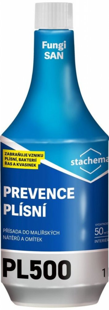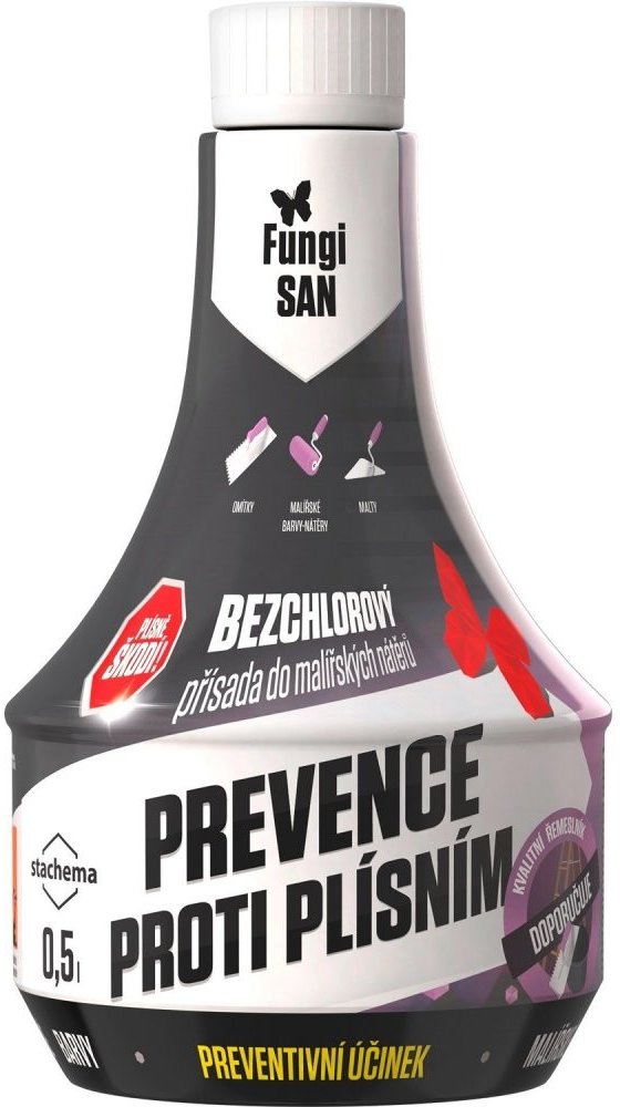 Návod k použití: Plíseň před aplikací neodstraňujte! Napadená místa postříkejte přípravky na likvidaci plísní FungiSPRAY chlorový nebo FungiSPRAY bezchlorový, výrobce STACHEMA CZ. Při silném napadení plísní je nutno postup opakovat. Aplikujte nátěrem nebo postřikem na suchý očištěný povrch (viz tabulka). Při silném napadení proveďte první nátěr 5% vodným roztokem a po zaschnutí aplikujte nátěr (viz tabulka). Vydatnost: Z 1 kg koncentrátu se ošetří cca 50 - 100 m2 plochy podle vydatnosti použité nátěrové hmoty (malířské nátěry).