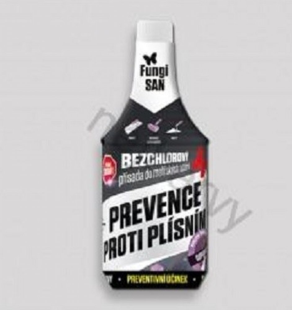 Fungisan bez obsahu chloru je moderní nátěr proti plísním s dlouhodobým preventivním účinkem. Přísada k ochraně zdiva a do vodou ředitelných nátěrových hmot, malířských nátěrů, omítek a jiných minerálních stavebních materiálů. Díky svému složení je Fungisan šetrnější pro lidský organizmus a přitom velmi účinný. Ve srovnání s přípravky na bázi chloru vykazuje dlouhodobější a intenzivní účinky. Absence chloru se příznivě projevuje také tím, že přípravek nezapáchá a ve stavebních materiálech nevznikají soli vázající vodu. Nátěr proti plísni a přísada Fungisan je vhodný i pro vysoce zátěžové podmínky především v interiéru staveb.Fungisan bez obsahu chloru nabízí prověřené vlastnosti proti vzniku plísní, bakterií, řas a kvasinek. Lze jej aplikovat v bytových i nebytových prostorách, v průmyslových provozech, veřejných budovách v interiéru i exteriéru. Pro sanační účely v exteriéru můžeme také doporučit speciální výrobek řady Sanatop. Fungisan přísada a nátěr proti plísni je účinný i v místech s extrémními podmínkami jako jsou například vývařovny, prádelny a jiné průmyslové nebo potravinářské provozy.