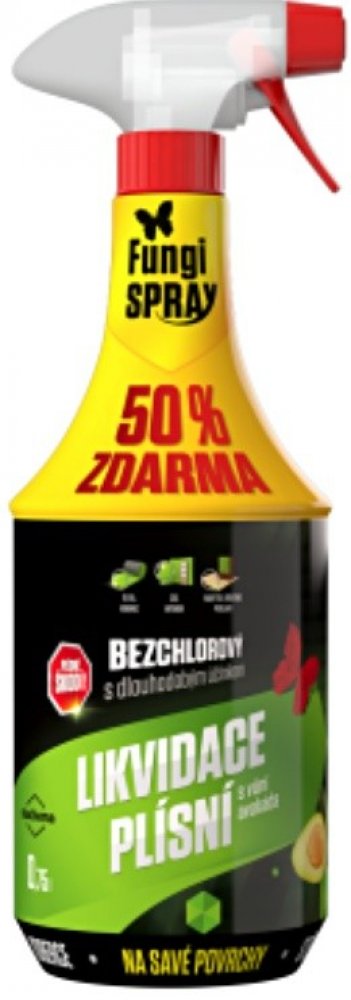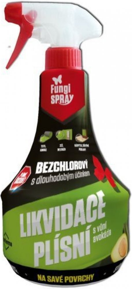 Kapalný přípravek určený k likvidaci plísní v domácnostech, zdravotnictví, potravinářství, veterinárních zařízeních a zemědělství zejména na porézních stavebních materiálech (zdi, omítky, beton, dřevo apod.) a na textiliích. Návod k použití: Plíseň před aplikací neodstraňujte! Napadená místa postříkejte ze vzdálenosti cca 10 cm a po 24 hodinách působení plíseň za mokra mechanicky odstraňte (kartáčem nebo hadrem namočeným v tomto přípravku). Při silném napadení plísní je nutno postup opakovat. Při kontaktu s lakovanými povrchy nutno předem odzkoušet na malém, případně skrytém místě. Na očištěný, vydezinfikovaný a suchý povrch stavebních materiálů aplikujte protiplísňový přípravek FungiSAN bezchlorový s preventivním účinkem proti plísním, výrobce STACHEMA CZ. V případě použití přípravku na textil, nebo jiné materiály, které mohou přijít do kontaktu s pokožkou, je třeba po ošetření důkladné vyprání a vyčištění ošetřených materiálů (odstranění zbytků přípravku). Skladování: V původních dokonale uzavřených obalech, odděleně od potravin, nápojů a krmiv, při teplotě 5 °C až 25 °C. Záruční doba: Skladovat a přepravovat v originálních dokonale uzavřených obalech, odděleně od potravin, nápojů a krmiv, při teplotě od +5 °C do +30 °C. VÝROBEK NESMÍ ZMRZNOUT. Po otevření ihned spotřebujte. Záruční doba: 36 měsíců od data výroby při dodržení podmínek skladování. Upozornění: Výrobce neodpovídá za škody způsobené nesprávným použitím přípravku. Používejte tento přípravek bezpečně. Před použitím si vždy pozorně přečtěte údaje na obalu a připojené informace o přípravku. Obsahuje: 10 g/kg kvarterní amoniové sloučeniny, alkyl(C12-C16)(benzyl)dimethylamonium-chloridy; 5 g/kg didecyl(dimethyl)amonium-chlorid, parfemy citrus / avokado. Likvidace: Prázdný obal i zbytky přípravku likvidujte jako nebezpečný odpad.