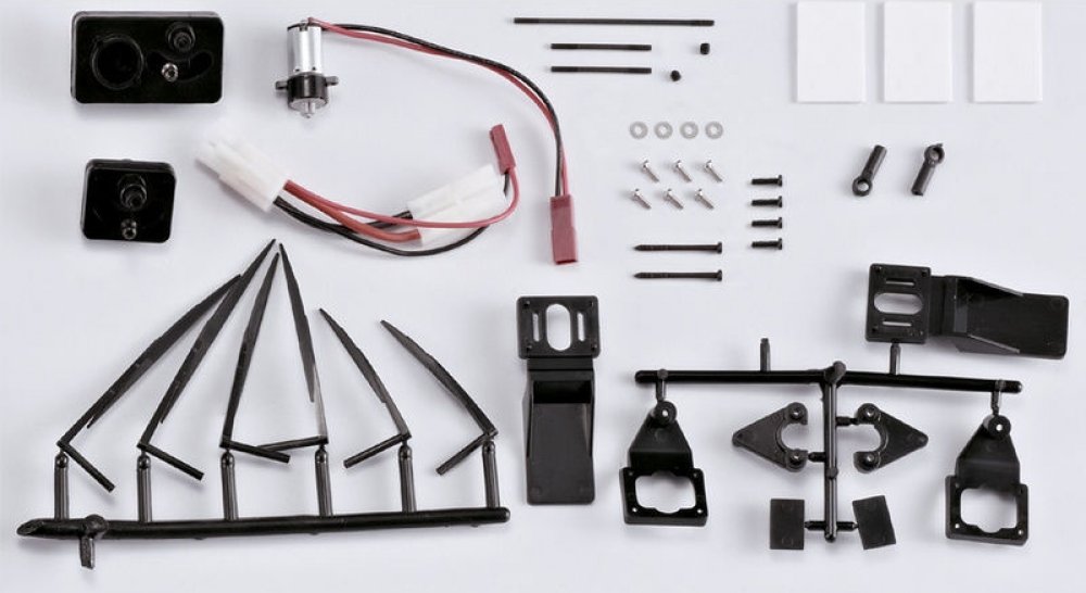 Stěrače se připevní díky montážní sadě na přední a zadní okna, přes montážní sadu se připojí k motorku. Máte na výběr z různých velikostí, které jsou v párech. Regulátor na ovládání motoru není součástí balení - můžete použít prakticky libovolný elektrický regulátor pro stejnosměrné motory, např. EFLA103. Stěrače pak ovládáte volným kanálem vysílače.Balení obsahuje: 6x stěrače různých velikostí (2 x 7,5 cm, 2 x 6 cm, 2 x 4,7 cm), elektrický motorek, montážní sada, obrázkový návod.