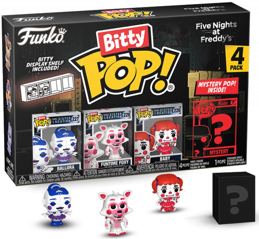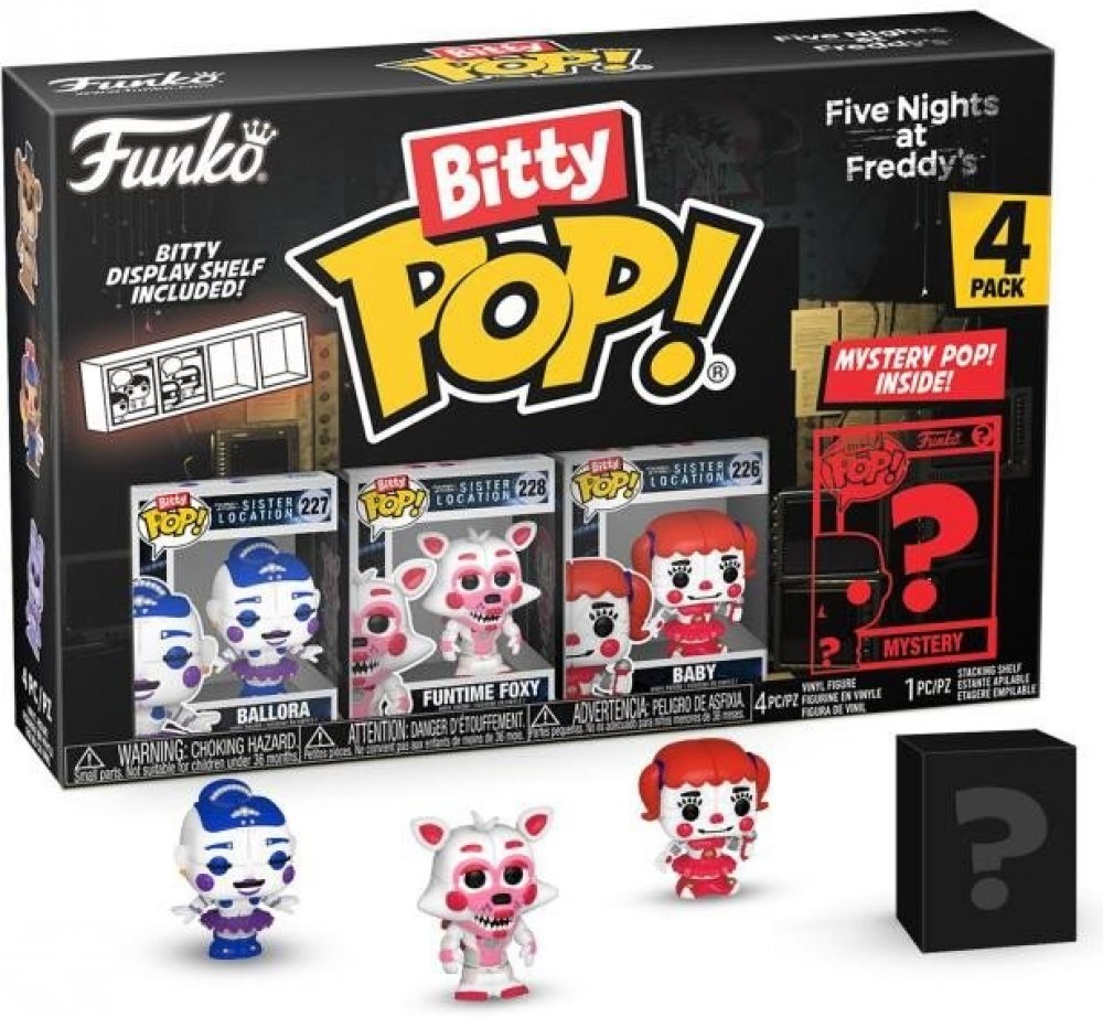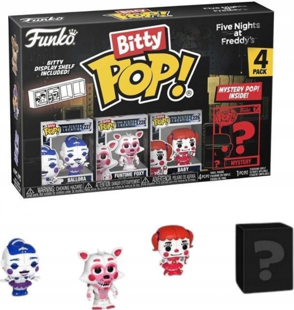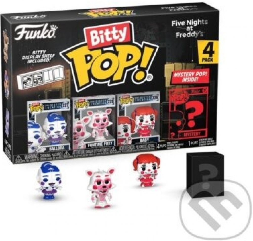 Funko POP! jsou sběratelské figurky založené na známých osobnostech a fiktivních postavách z těch nejznámějších filmů, TV seriálů, videoher a dalších populárních témat, které se díky svému humornému zpracování těší velké oblibě mezi fanoušky a sběrateli po celém světě. Objev svoje oblíbené Funko figurky, tentokrát zmenšené do Bitty Pops! podoby o velikosti 2,2 cm. V každém balení najdeš 3 figurky z tvé oblíbené licence, a jednu Rare Chase nebo Hyper Rare Chase mystery figurku. Záleží jen na tvém štěstí, jakou v balení najdeš! Součástí balení je také mini polička, na které se budou Bitty Pops! skvěle vyjímat. Udělej si radost a rozšiř svou sbírku také o Funko Bitty POP! 4-Pack Five Nights at Freddy's - Foxy. Výprodej Zkusit štěstí Ochranné obaly Celá nabídka