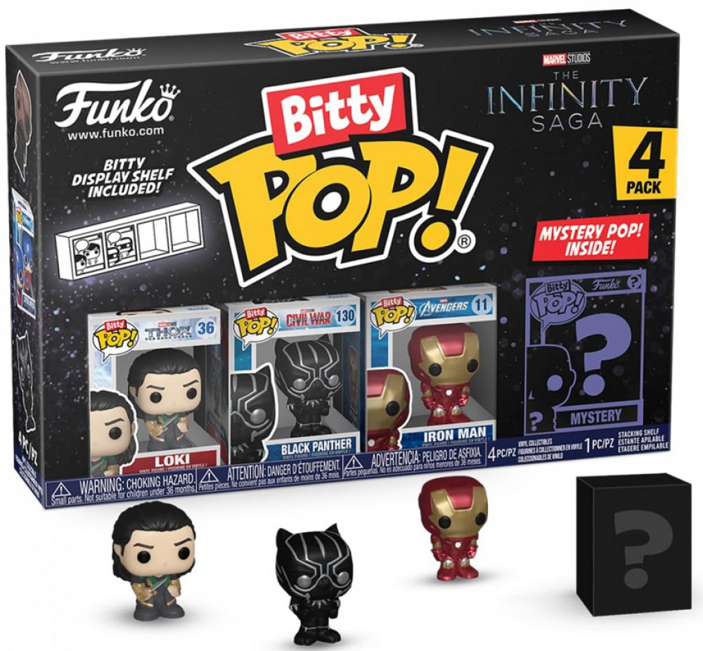 Funko Bitty Pop! Marvel- Loki Black Panther Iron Man + Mistery 4PK