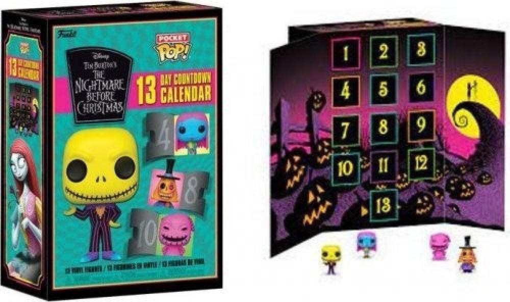 Funko - Pocket Pop Advent Calendar The Nightmare Before Christmas (Nově vytvořená položka - popis následuje, k dispozici také na vyžádání) Postenware - wenn weg, dann weg Revoluce ve světě fandomu. Pryč jsou doby, kdy superhrdinové, padouši a kouzelné bytosti existovali pouze na stříbrném plátně. Kdo by nechtěl strávit čajový dýchánek s Šíleným kloboučníkem, probudit se vedle Thora nebo sdílet obývací pokoj s Batmanem? To, co bylo možné jen v nejdivočejších snech, je nyní realitou..... co jsou figurky Funko Pop!?Figurky Funko Pop! jsou vyrobeny z vinylu Figurky Funko Pop jsou vyrobeny z vinylu a jsou obvykle 10 cm vysoké, takže se vejdou do každého rohu nebo na nejmenší poličku. To, co je dělá opravdu výjimečnými, jsou jejich nadměrně velké hlavy. U některých modelů je hlava nejen pevná, ale také pohyblivá! Nemusíte se tedy bát, když na vás z poličky vyletí Loki nebo Hulk - můžete se prostě bavit!" Vinylové popy se dodávají v nejrůznějších provedeních. S Pops si můžete do obývacího pokoje přenést celý svět. Proměňte svůj domov nebo kancelář v říši divů. Vyzdobte si koupelnu postavičkami Funko Pop Marvel, prozkoumejte vzdálené galaxie s našimi postavičkami Funko Pop Star Wars nebo se ponořte do vzpomínek na dětství a objevte širokou sukni postaviček Funko Pop Disney. Adventní kalendář Funko, ve kterém najdete 13 oblíbených figurek pint size z filmu The Nightmare Before Christmas v exkluzivní limitované edici. Výška figurky: cca 4cm. Kalendář obsahuje 13 figurek POP! do kapsy. Každá figurka je přibližně 4 cm vysoká.