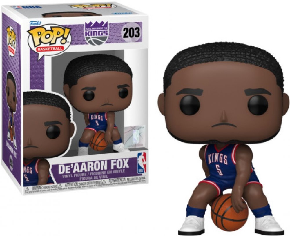 Vinylová basketbalová POP! figurka #203 (Sacramento Kings) - De'Aaron Fox. Figurka oblíbeného amerického basketbalisty De'Aarona Marteze Foxe.