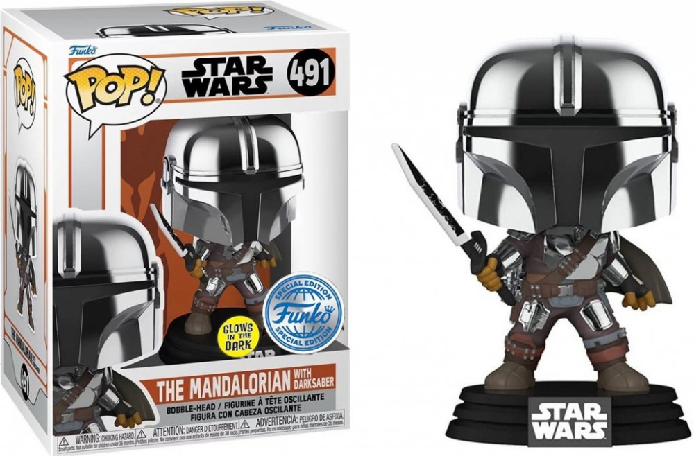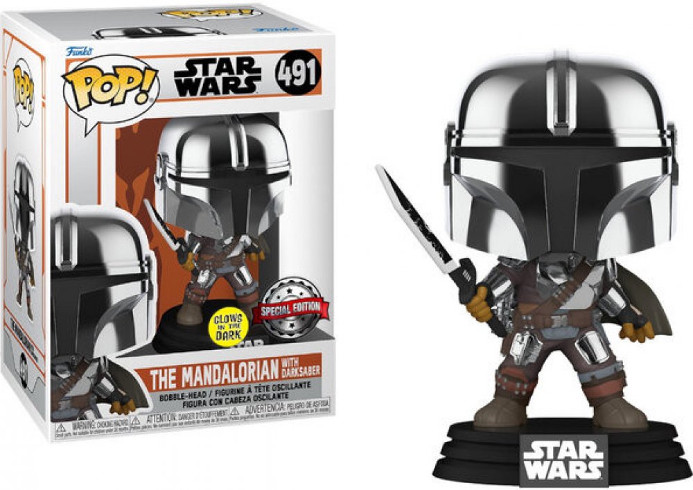 Funko Pop! 491 Star Wars The Mandalorian With Darksaber GITD Special Edition