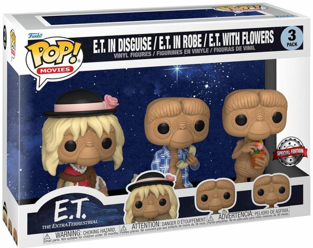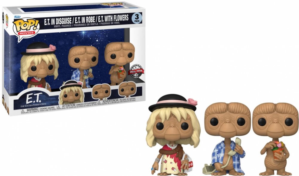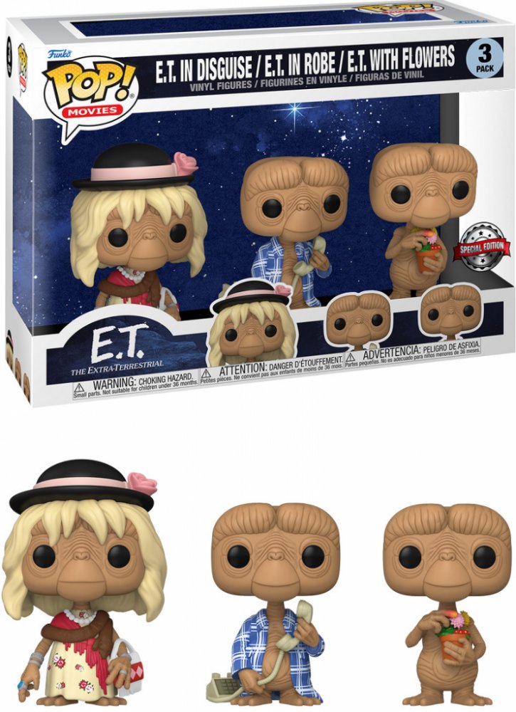 E.T. v převleku, E.T. v županu a E.T. s květinami, stylizované POP vinyly od společnosti Funko, jsou tři jedinečné sběratelské figurky, které zachycují různé ikonické momenty z kultovního filmu Stevena Spielberga E.T. the Extra-Terrestrial. Každá z těchto figurek byla společností Funko pečlivě navržena tak, aby zachycovala nejen vzhled E.T., ale také jeho osobnost a charakteristické momenty z film...