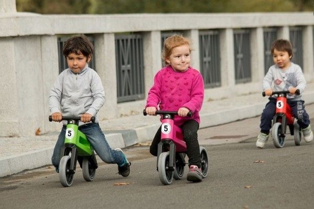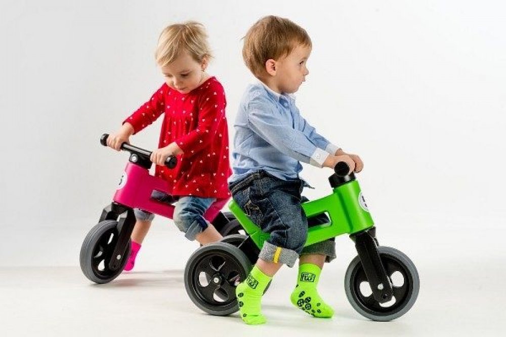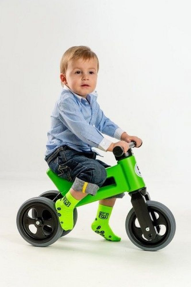 FUNNY WHEELS 2v1 s pneumatikami, díky kterým má odrážedlo tichý provoz a kola se nekloužou. A jedééém! FUNNY WHEELS je originální české odrážedlo, které dokáže růst s vaším dítětem. Vzhledem k tomu, že můžete vyměnit dvě zadní kola za jedno a nastavit jeho výšku, nemusíte kupovat každý rok nové odstrkovadlo. FUNNY WHEELS vám vydrží, dokud nebudete kupovat první kolo. Hlavní výhody FUNNY WHEELS: 2v1 – během pár minut změníte tříkolové odrážedlo na dvoukolové 2 výškové polohy – nastavíte vpředu i vzadu (rozdíl 3 cm) Tiché pneumatiky, které nekloužou na výběr v 6 barvách – zelená, červená, modrá, růžová, oranžová, šedá cool design bezpečné i pro ty nejmenší z odolného a nezávadného plastu, se zahlazenými spoji omyvatelné vlažnou vodou a mýdlovými čisticími prostředky kompletně vyrobené v České republice FUNNY WHEELS roste stejně, jako váš prcek. Ten začne jezdit na malém tříkolovém odrážedle, až se vytáhne, jednoduše FUNNY WHEELS zvednete o 3 cm výš a jede se dál. Až přijde čas trénovat balanc, jednoduše vyměníte dvě zadní kolečka za jedno a dítko se může začít připravovat na jízdu na kole. Jak přesně to funguje, vidíte na videu. Odstrkovadlo je přitom stabilní (ve variantě se třemi koly). Vidlice má omezený rozsah otáčení a řídítka se tak nemohou přetočit. Rukojeti řídítek jsou na konci rozšířené, a tím chrání dětské ruce před poraněním. Odrážedlo je hračka, která baví snad každé dítě. S FUNNY WHEELS si užije radost z pohybu, zlepší si své motorické schopnosti a koordinaci, natrénuje pozornost, rovnováhu a třeba si i zazávodí! Vaše společné procházky budou delší, rychlejší a zábavnější. Technické parametry: doporučený věk: od 18 měsíců nosnost: 25 kg váha odrážedla: 1,9 kg výška sedla: 28/30 cm šířka řidítek: 30 cm rozteč zadních kol: 20 cm průměr kola:19 cm šířka pneumatiky: 4 cm Odrážedlo zakoupíte v krabici - tam jej najdete v částečně složeném stavu, ale nebojte, dle návodu jednoduše sestavíte celé odrážedlo.