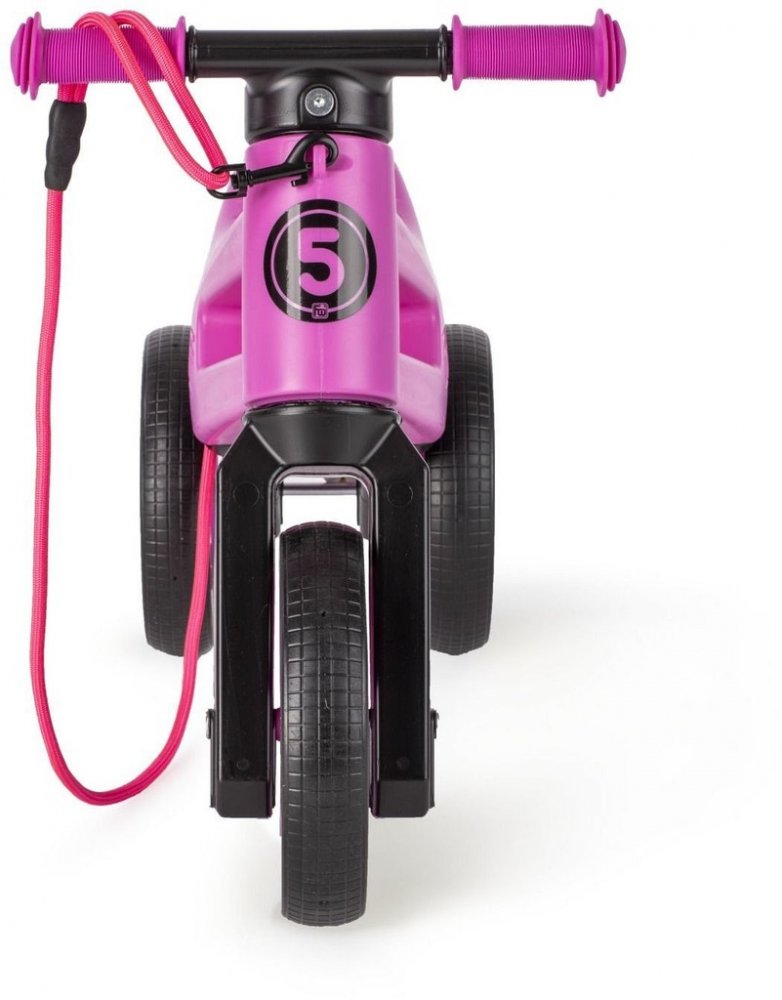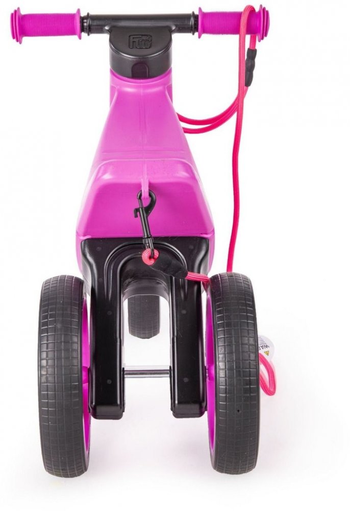 Odrážedlo z odolného a nezávadného plastu, se zahlazenými spoji je kompletně vyrobené v České republice. Je vybaveno designovými koly s měkkými pneumatikami, které nekloužou, a na podlaze nezanechávají stopy po ježdění. Navíc jsou pneumatiky zcela bez vzduchu, takže se nemohou propíchnout. Vidlice má omezený rozsah otáčení a řídítka se tak nemohou přetočit. Měkké rukojeti řídítek jsou na konci rozšířené a tím chrání dětské ruce před poraněním. Jistě oceníte odnímatelný popruh, díky kterému si odrážedlo jednoduše pověsíte na rameno a máte obě ruce volné.