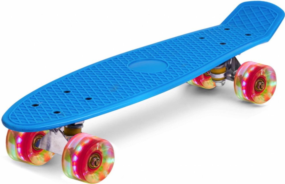 Penny board se svítícími LED kolečky je velmi atraktivní, je vybaven svítícími kolečky s LED technologií. Svítící kolečka přitahují pozornost lidí a při jízdě budete vyčnívat z davu. Jízda na něm, obzvláště po tmě Vám přinese velkou radost. Materiál: plast + gumová kolečka Maximální hmotnost uživatele: 60 kg Rozměry: Pennyboard: 56 cm x 15 cm x 11 cm rozměry desky: 56 cm x 15 cm průměr kola: 5,7 cm výška desky od země: 11 cm rozměry balení: 57cm x 13cm x 17cm
