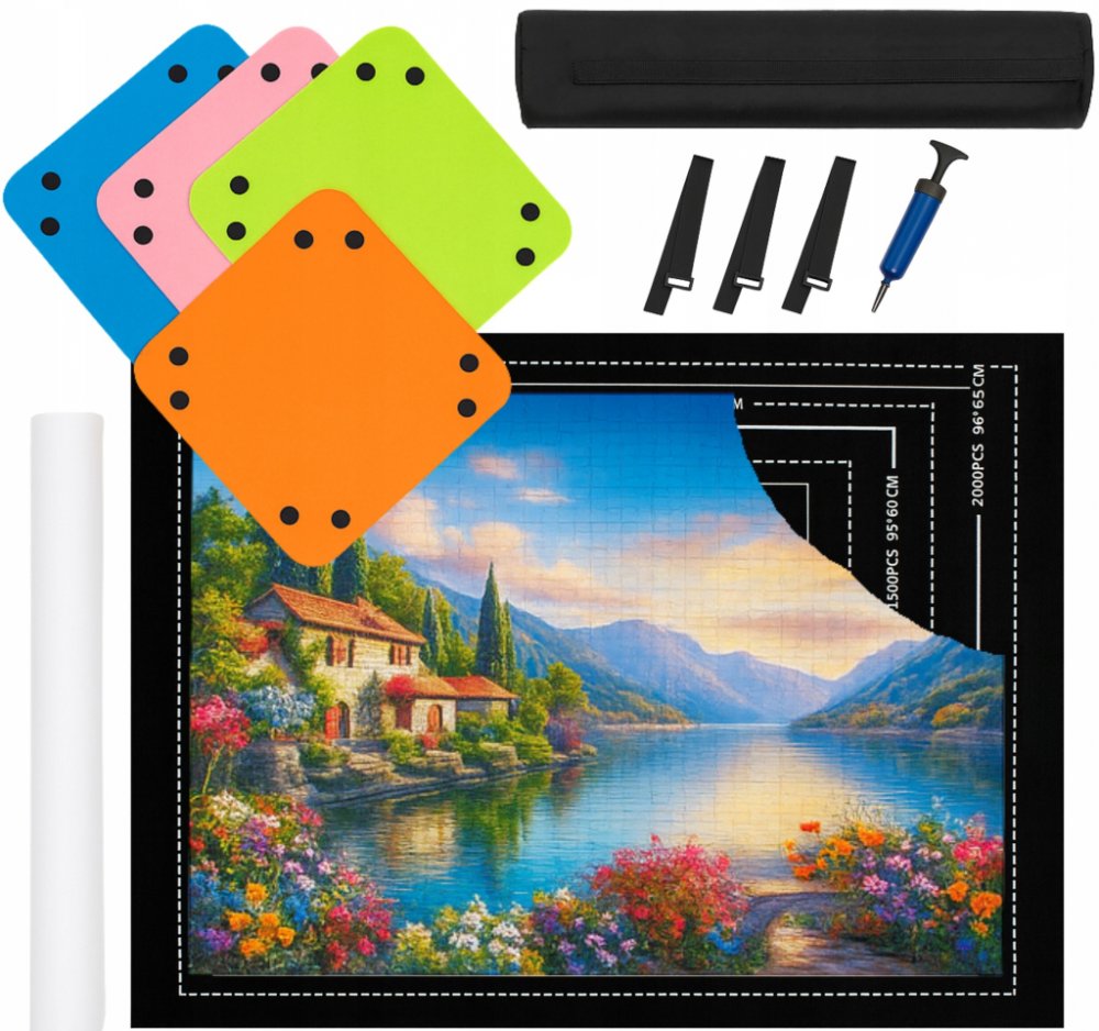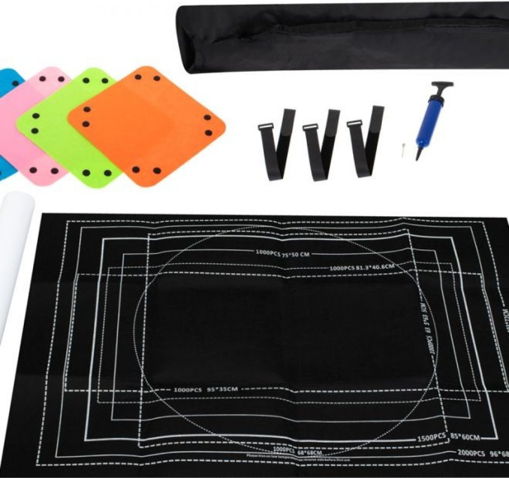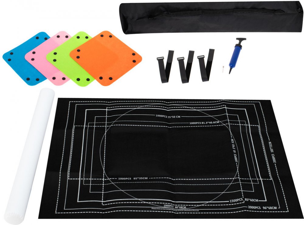PUZZLE MAT DESKA 500-2000EL. Hádanky jsou skvělou zábavou a výborným způsobem, jak se zbavit stresu, a to jak pro děti, tak pro dospělé. Čím více dílků, tím více zábavy.Ale co když si od této činnosti náhle potřebujete odpočinout? Co si počít se skládačkami, které jste složili, aby práce nepřišla nazmar?Máme pro vás ideální řešení!Plstěná podložka na puzzle vyřeší váš problém a umožní vám dokončit puzzle od okamžiku, kdy jste ho složili.Praktický nástroj pro všechny milovníky vícedílných hádanek.Podložka je vyrobena výhradně z polyesteru se strukturou připomínající plsť. Má bílý okraj, který znázorňuje plochu, kterou bude aranžovaný vzor zabírat.Je ideální pro skládačky s počtem dílků od 500 do 2000. Nic vám samozřejmě nebrání sestavit puzzle v menším množství.Podložka vám usnadní ukládání a přenášení skládačky, kterou jste začali skládat. Chcete-li sestavenou konstrukci skrýt, jednoduše nafoukněte tubus a navlékněte na něj podložku puzzle. Ta ochrání skládačku před vysypáním a umožní vám skládačku později dokončit.Perfektní nápad na dárek pro všechny milovníky vícedílných skládaček. Díky tomu bude skládání puzzle ještě zábavnější. Obsah sady: mat,potrubí,4 sáčky s puzzle,čerpadlo,popruhy pro přenášení podložky,úložný kufr. Materiál: Polyester s plstěnou strukturou. Počet skládaček, které lze umístit na podložku. : 500-2000 Rozměry podložky (D x Š) ): 118 cm x 79 cm Rozměry obálky: 45 cm x 35 cm x 6 cm