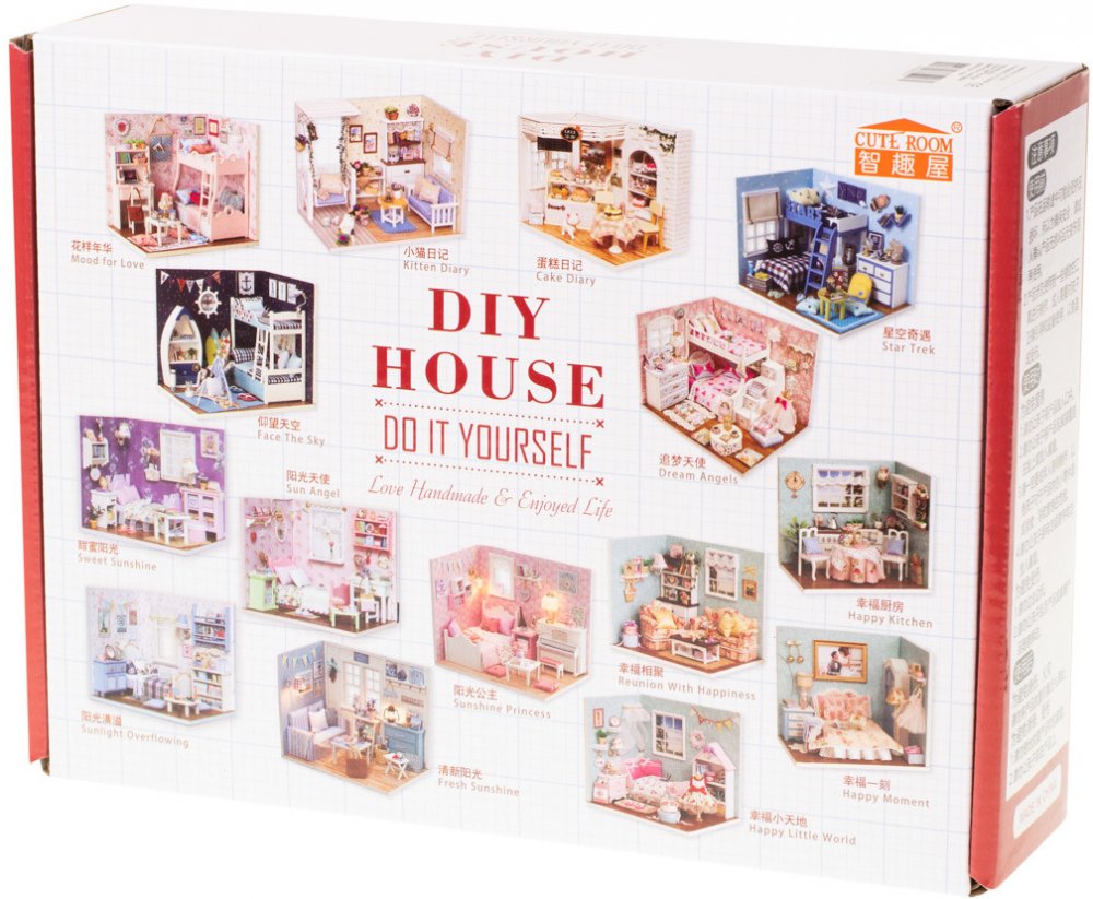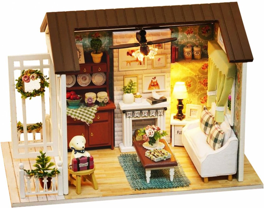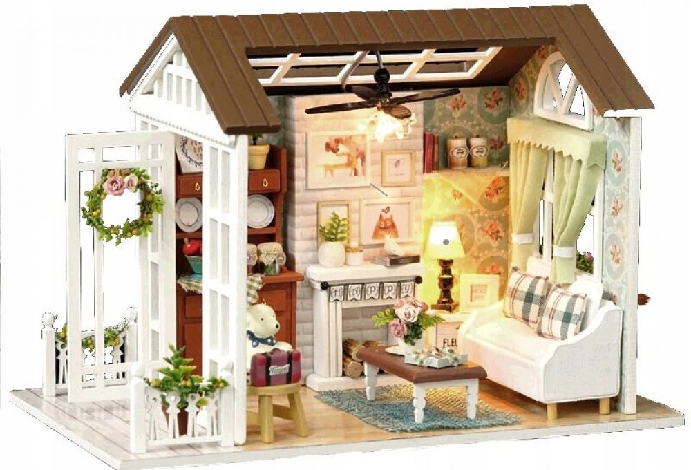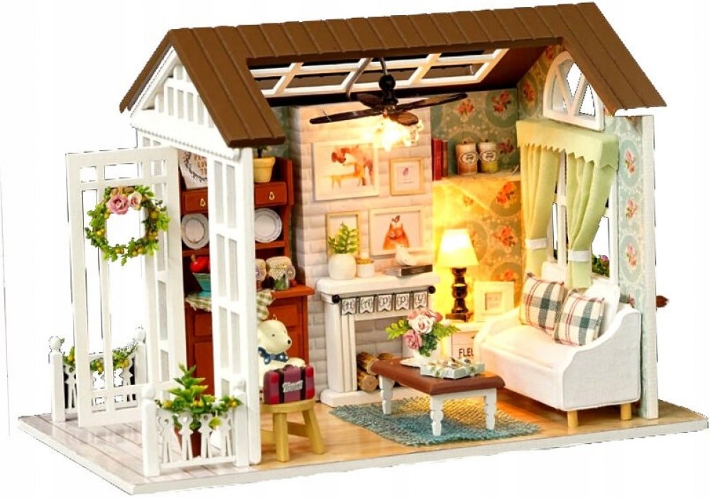 FunPlay 6995 DIY Dřevěný domeček pro panenky s příslušenstvím obývací pokoj 15x20,6x11,8cm