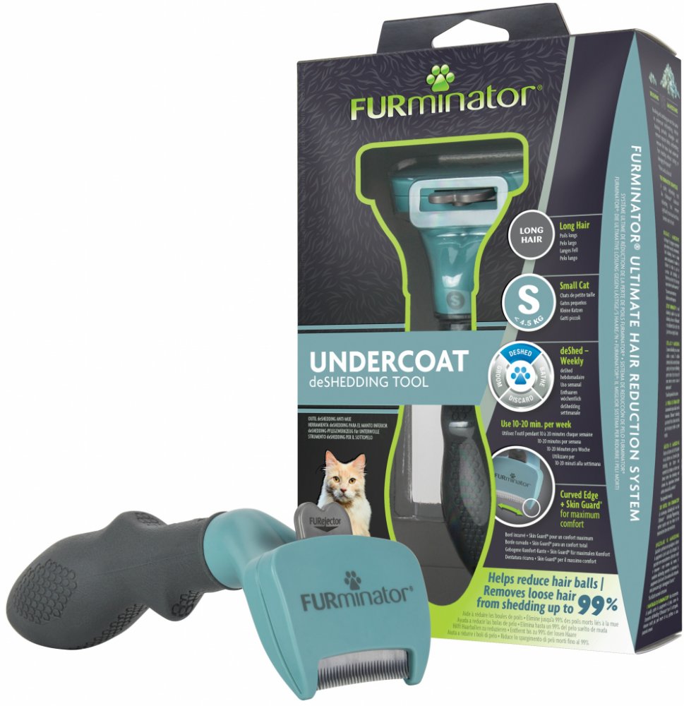 Hrablo FURminator je určeno pro péči o srst dlouhosrsté kočky malých plemen. Nástroj pro vyčesávání dlouhé srsti má šedé tlačítko FURejector, které je inovováno. Nově kromě funkce uvolnění vyčesaných chlupů disponuje i funkcí ochrannou. Po zacvaknutí při zatlačení v dolní pozici chrání zuby z nerezové ocele, když se hrablo nepoužívá. Není tedy potřeba nasazovat kryt na ochranu. Další inovací jsou postranní okraje u hřebene. Tyto okraje chrání vyčesávací hranu a zároveň brání zarývání hrany do kůže. Zubatá hrana z nerezové oceli nepoškozuje srst a neřeže. Pravidelné vyčesávání srsti má pozitivní vliv na línání a snižuje pravděpodobnost plstnatění.