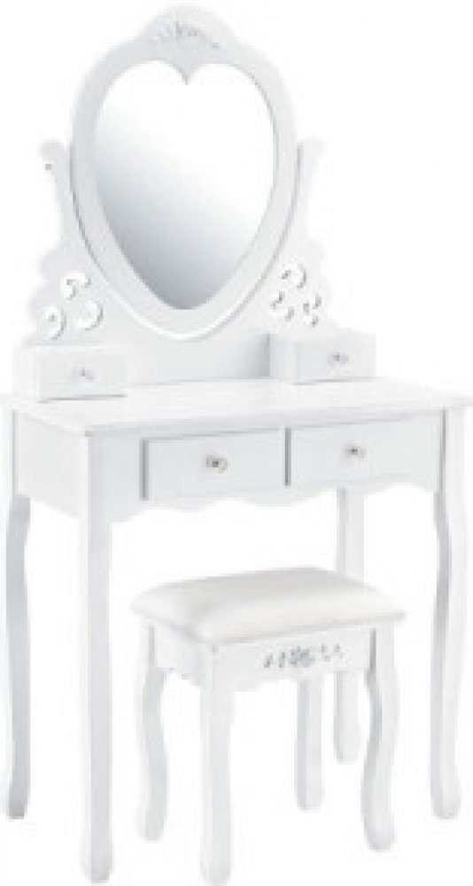 Toaletní stůl v romantickém stylu ozdobí každou místnost a stane se jejím důležitým a nepřehlédnutelným prvkem. Detailní ornamenty doplňují celkový romantický dojem. V zrcadle ve tvaru srdce vynikne Vaše krása v úplně novém světle!