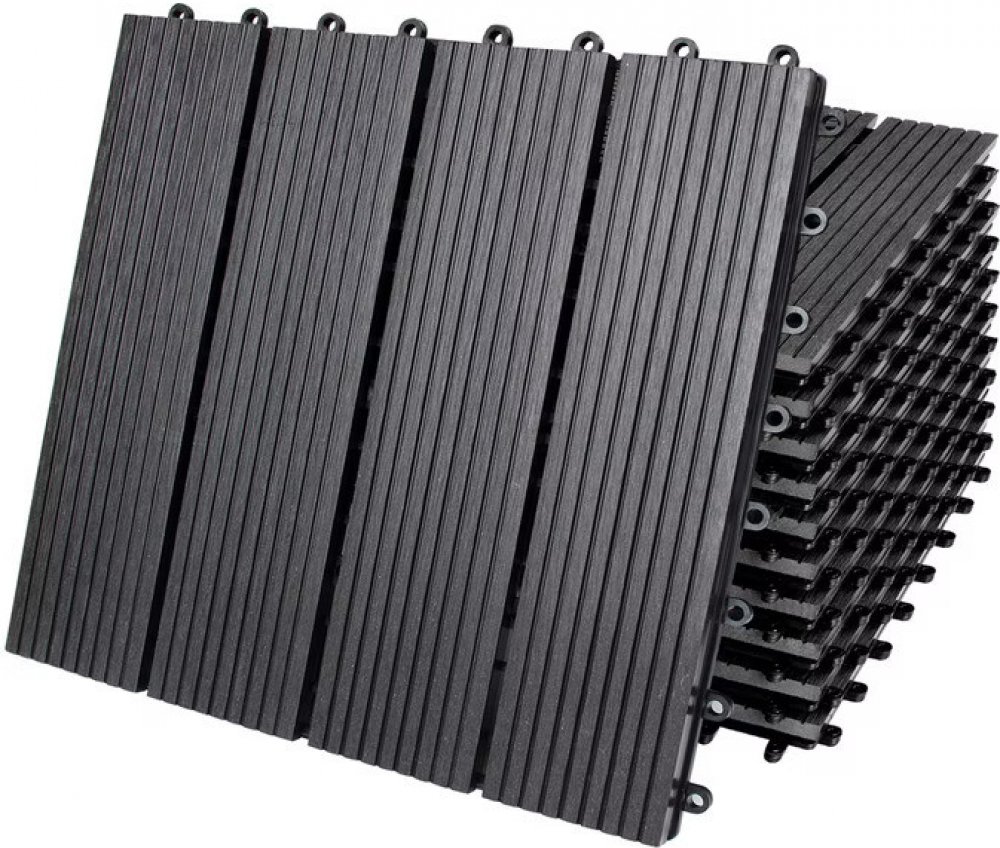 Materiálové dlaždice: kompozit WPC dřevo-plastRozměry: 30 x 30 cmCelková výška: 2 cmBarva: antracitVzor: klasický