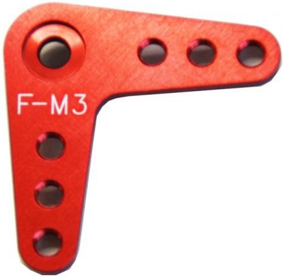 Hliníková L páka pro serva Futaba. Celková délka ramene 28 mm, osová vzdálenost otvorů M3 od středu tisícihranu páky 10, 15 a 20 mm.