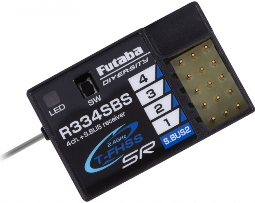Čtyřkanálový přijímač Futaba přenosového systému T-FHSS SR (super rychlá odezva, bez telemetrie)/T-FHSS Surface 2.4GHz (s telemetrií) pro RC auta a lodě. Je určen pro všeobecné použití v modelech všech kategorií. Port S.BUS2 pro obousměrnou komunikaci umožňuje připojení telemetrických čidel Futaba a S.BUS2 serv či gyroskopů. Provozní stavy přijímače jsou signalizovány LED indikátorem.