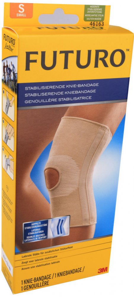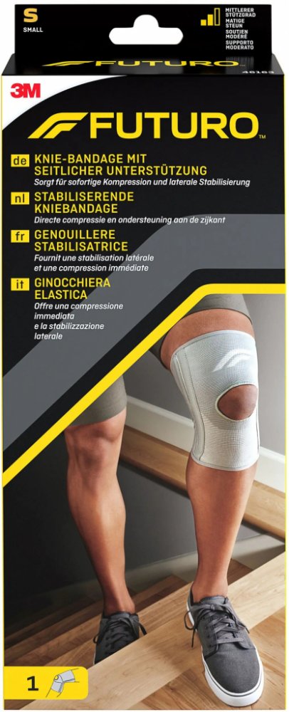 Dvojitá boční výztuha FUTURO poskytuje větší stabilitu a oporu bez omezení pohybu. Otvor na úrovni kolena vytváří lepší oporu jablíčka. Zajistí okamžitou kompresi a příčnou stabilizaci. Poskytnutí opory při běžných poraněních, jako je podvrtnutí nebo namožení a všeobecná opora. Čtyřsměrový strečový materiál udržuje bandáž na místě. Otvor na čéšce zajišťuje její oporu. Dvojité boční stabilizátory poskytují dodatečnou stabilitu bez omezení pohybu. Velikost S: 30,5-36,8 cm.