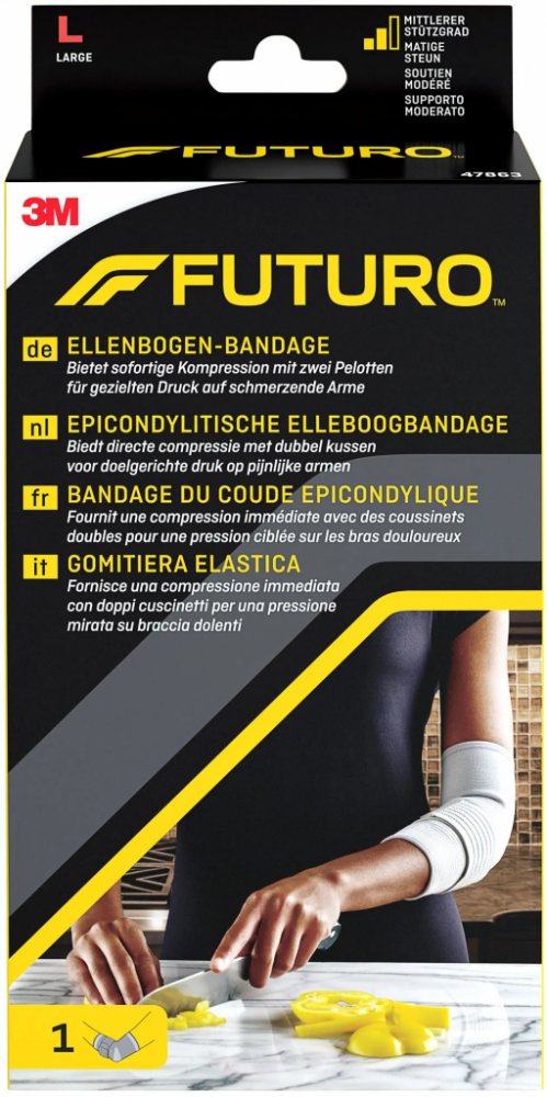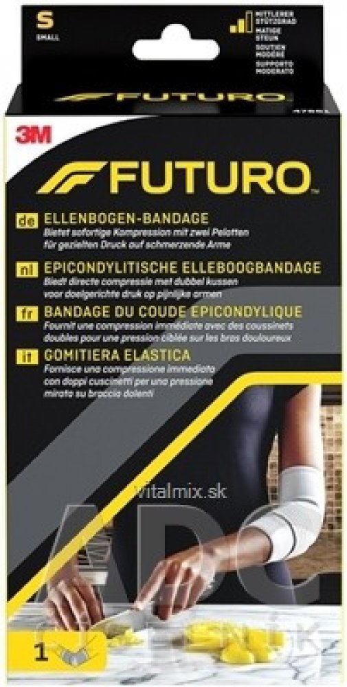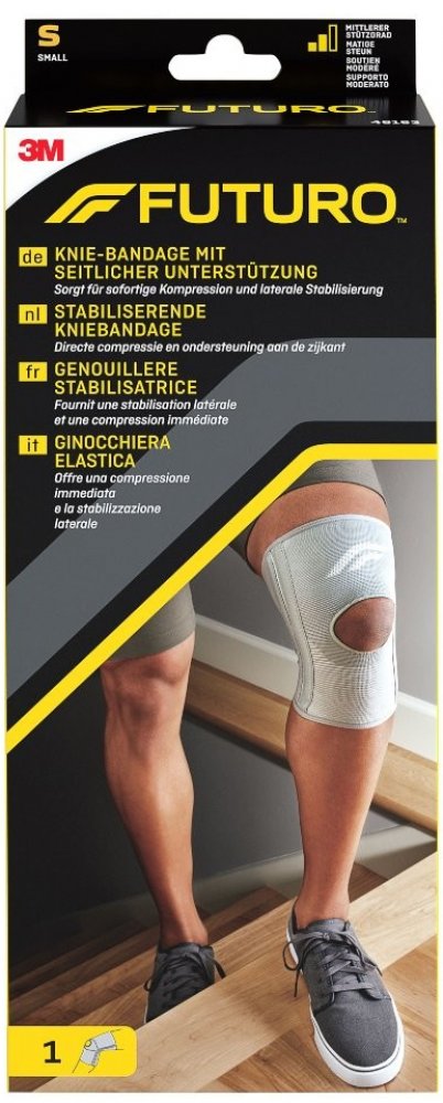 FUTORO kolenní bandáž - pomáhá zmírnit akutní a chronické bolesti kolenního kloubu. Boční stabilizátory poskytují dodatečný opěrný účinek. K pokožce šetrný a prodyšný materiál pro příjemné a pohodlné nošení. Jednoduché nasazení a sejmutí. Speciální pletenina snižuje tvorbu záhybů v podkolení. Pro levé nebo pravé koleno. Stabilizeční bandáž FUTURO zajišťuje pevné držení a přispívá ke zmírnění akutních i chronických bolestí kolene v případě přetížení a nestability. Bandáž pomáhá zabránit vzniku dalších poranění. Dvojité stabilizátory na obou stranách slouží dodatečnému opěrnému efektu. Tenký design bandáže umožňuje přizpůsobit se přirozenému tvaru kolene. Pokud se vyskytne bolest nebo nepříjemné pocity, ukončete používání a kontaktujte svého lékaře. Velikost dle obvodu kolene: Small (S) - 30,5 - 36,8cm, Medium (M) - 36,8 - 43,2 cm, Large (L) - 43,2 - 49,5 cm.