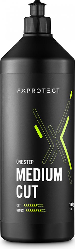 FX Protect Medium Cut - středně abrazivní leštící pasta MEDIUM CUT / ONE STEP určená k odstranění mírných škrábanců z povrchu laku. Při použití JEDNÉHO KROKU zanechává vysoký stupeň lesku. Odstraňuje poškození po broušení laku o zrnitosti P2000. Vysoce efektivní a málo prašná, díky čemuž zkracuje pracovní dobu na povrchu. Vytvořeno na bázi vody, neobsahuje rozpouštědla ani plniva nebo vosky. Dokonale připraví povrch pro použití leštiící pasty FINE CUT. Obsahuje oxid hlinitý.