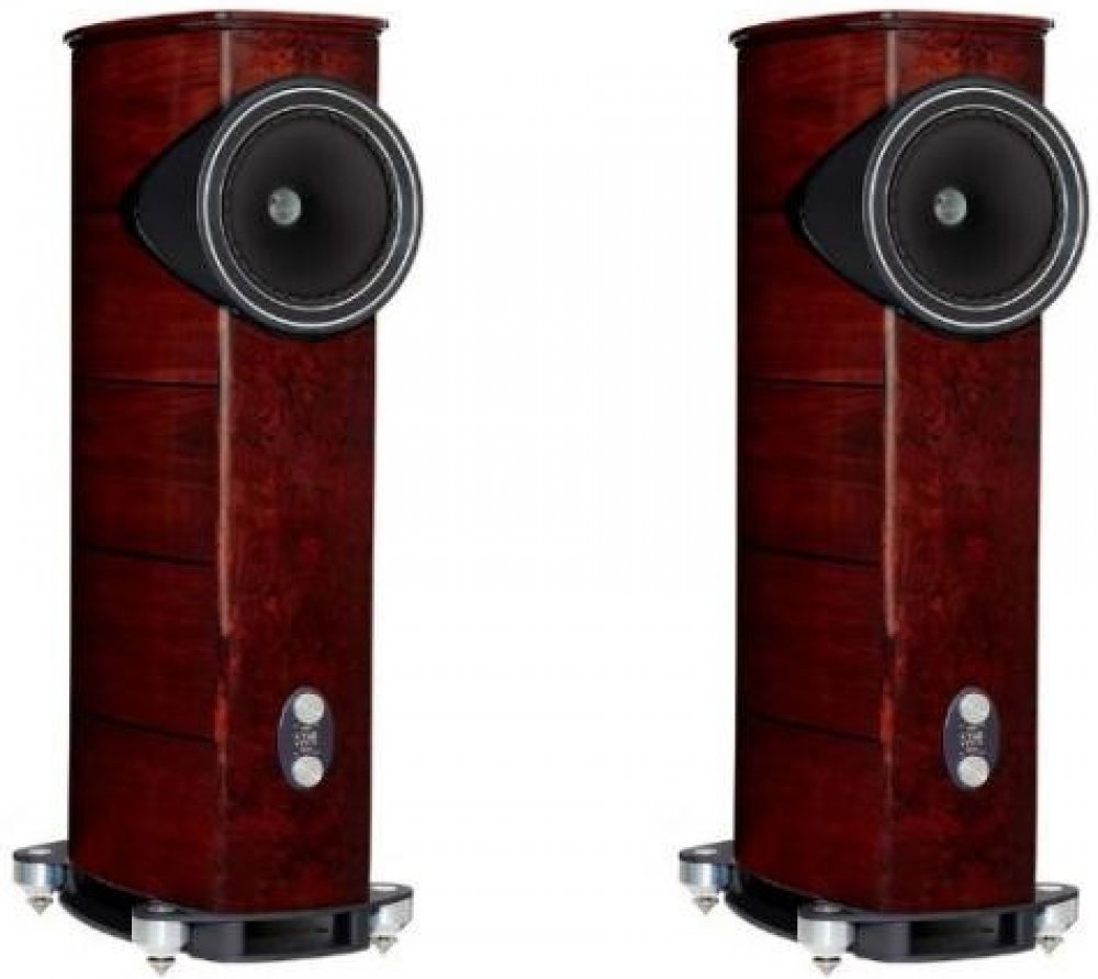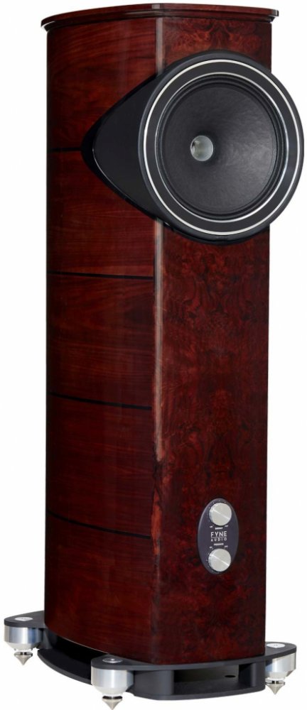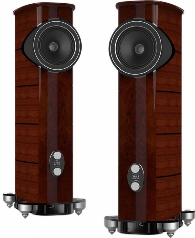Fyne Audio F1-12 Vlajková loď skotské značky Fyne Audio. F1-12 sází na obrovský koncentrický IsoFlare reproduktor s dvoupásmovou konstrukcí, vsazený do ozvučnice s oválným půdorysem, prakticky bez ostrých hran. Samotný měnič je navíc díky "tubusu" předsazený, což eliminuje boční difrakce. Na čelní stěně je dvojice potenciometrů pro plynulou regulaci v rozsahu +/- 3 dB -. Jedním se dá ladit prostředek frekvenčního pásma (2 500 - 5 000 Hz) , druhý ovlivňuje energii od středů až po výšky (750 - 26 000 Hz), takže projev reprosoustav se dá přizpůsobit různorodé akustice i vkusu. První potenciometr výrobce nazývá "energy" a druhý "presence", z čehož lze usoudit účel prováděných změn na frekvenční charakteristice. Reprosoustavy stojí na mohutném kovovém podstavci (vyfrézovaném z masivního 20 kg ingotu), posazeném na čtyřech extrémně robustních hrotech. V základně jsou vzadu umístěny také dva páry reproduktorových terminálů a zemnící kolík. Velkými průduchy ze základny proudí do všech čtyř směrů vzduch z do spodu mířícího bassreflexu s trnovým difuzérem typu BassTrax, díky němuž je proudění plynulé a neměla by vznikat slyšitelná rušení a turbulence. Tlak vzduchu z bassreflexu je navíc "filtrován" systémem dvou vnitřních pracovních komor. Koncentrický měnič IsoFlare kombinuje mohutný 30 cm středobasový kónus z kombinace různých vláknitých materiálů a titanovou kopulku kompresního tweeteru s průměrem 7,5 cm, schovanou za dlouhým kovovým zvukovodem. Oba měniče pohání systém silných neodymových magnetů. F1-12 jsou vyráběny ve Velké Británii ručně a na povrchu je luxusní pravá ořechová dýha s tmavými ořechovými proklady, které zdůrazňují klenoucí se linie ozvučnic. Poctivě zpracovaná je také frekvenční výhybka s nastavením na 750 Hz, kde jsou výběrové součástky ještě dále kryogenicky ošetřovány. Ozvučnice mají na výšku 135 cm, na šířku 45 cm a do hloubky 68 cm, přičemž díky bytelným stěnám z MDF a neméně bytelným vnitřním výztuhám váží 93 kg . V toleranci -6 dB a dodatkem "typicky v místnosti" uvádí výrobce frekvenční odezvu 26 - 26 000 Hz, impedanci 8 ohm a charakteristickou citlivost 96 dB / 2,83 V / m. Vrcholný model F1-12 skotských Fyne Audio je výrazný - to jednoduché slovo skvěle popisuje jeho estetiku s nádhernou dýhou a pečlivým zpracováním, to slovo vystihuje jeho neotřelý vzhled a hlavně tímhle slovem ideálně shrnete i zvukovou charakteristiku. Není jednoduché z F1-12 dostat všechno, co se v nich skrývá - řeknou si o mohutný koncový stupeň a nejlépe jim je při alespoň trochu vyšší hlasitosti, nejsou ideálem pro audiofilské večerní šeptání. Zato dokážou naplnit místnost energií, hutností a hudbou s tahem na bránu, dokážou zprostředkovat takový vlastní malý koncert, dokážou rozvíjet a prohlubovat poslechový zážitek s každou další uplynulou skladbou a hlásí se tím vším dost hlasitě o titul patrně nejlepších dostupných reprosoustav s velkým koncentrickým měničem. Specifikace: System Type 2 way, downwards firing port, with BassTrax Tractrix diffuser* Recommended amplifier power (Watt RMS) 20 - 350 Continuous power handling (Watt RMS) 175 Sensitivity (2.83 Volt @ 1m) 96dB Nominal impedance 8 Ohm Frequency response (-6dB typical in room) 26Hz - 26kHz Drive unit complement 1 x 300mm IsoFlare point source driver, multi-fibre bass / midrange cone, with 75mm titanium dome compression tweeter, neodymium magnet system Crossover frequency 750Hz Crossover type Bi-wired passive low loss, 2nd order low pass, 2nd order high pass, Deep Cryogenically Treated Dimensions - HxWxD 1350 x 450 x 680mm (53.2” x 17.7 x 28.6”) Weight - Each 93kg Finishes Piano Gloss Walnut System adjustments High frequency energy (750Hz - 26kHz) +/-3dB Presence (2.5kHz - 5.0kHz) +/- 3dB
