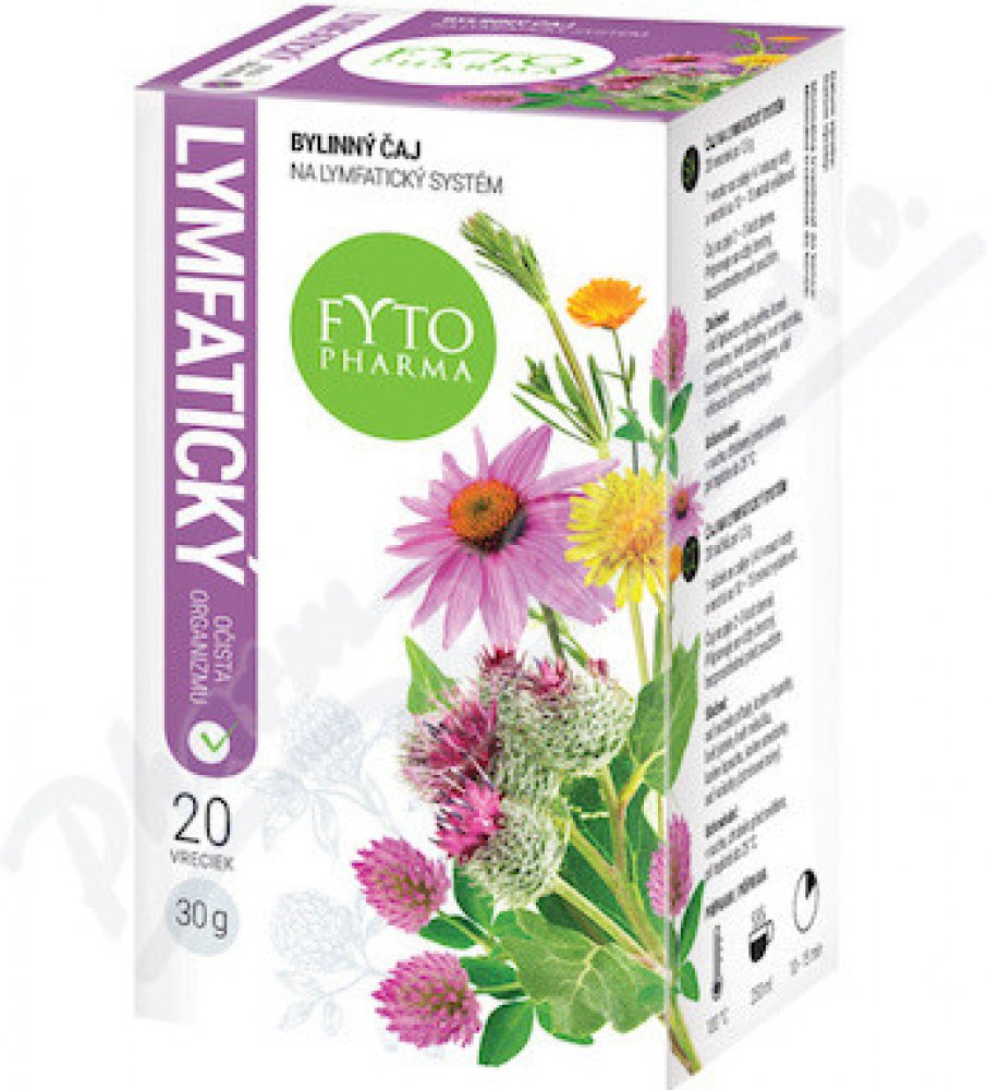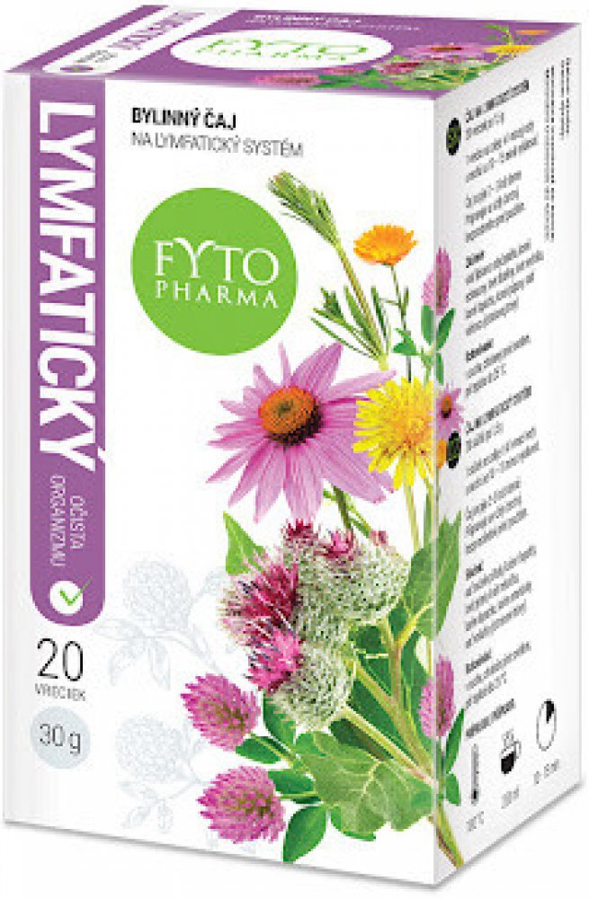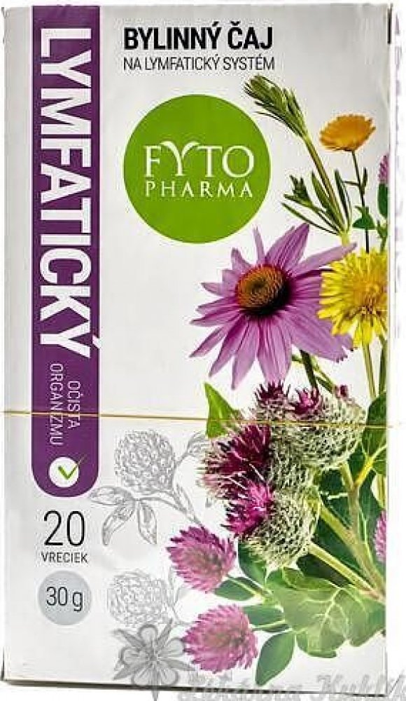 Bylinný čaj na lymfatický systém obsahuje směs bylin - svízel, třapatku, jetel, měsíček, lopuch, smetánku a voňatku. Svízel přítula podporuje normální činnost lymfatického systému a má antioxidační vlastnosti. Echinacea přispívá k normální funkci imunitního systému a normální funkci dolních močových cest. Jetel podporuje normální činnost srdce (kardiovaskulární systém - krevní tlak) a podporuje menopauzální komfort. Měsíček přispívá k osvěžení těla, přispívá k normální funkci jater a střev, normálnímu trávení a k normální funkci dýchacího systému. Lopuch přispívá k vylučování - pročištění těla, k normální hladině glukózy v krvi a k normální funkci dýchacího systému. Balení obsahuje 20 sáčků po 1,5g.