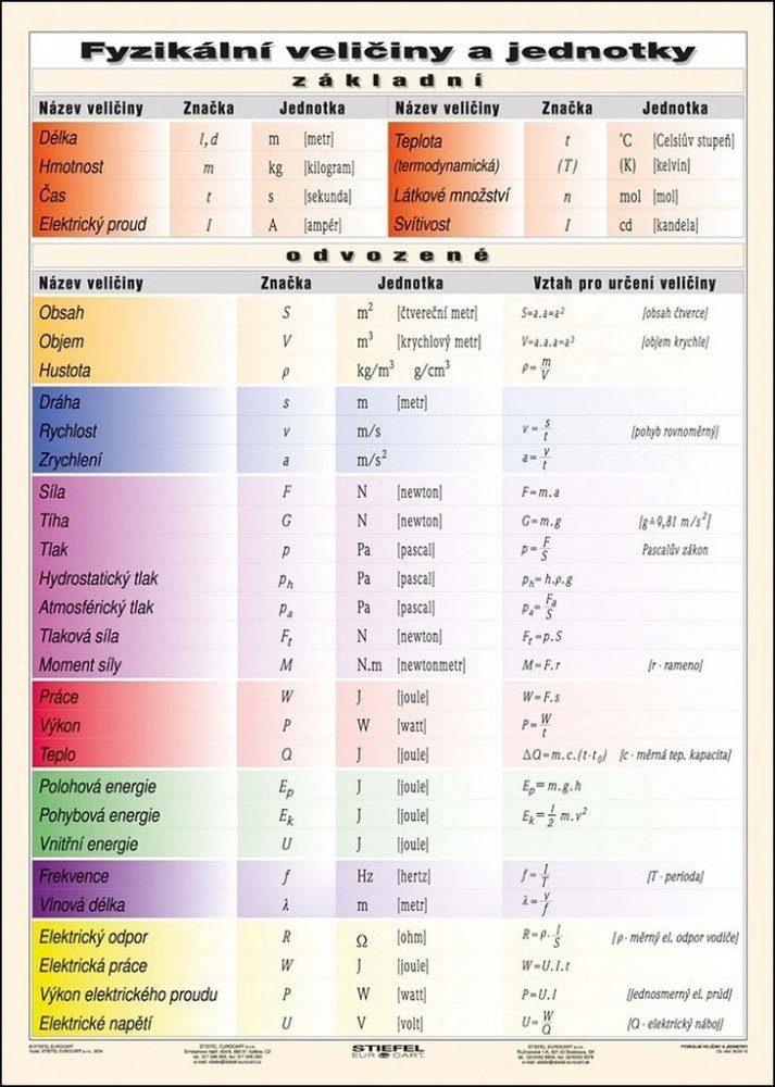 Fyzikální veličiny a jednotky- tabulka A5 Stiefel