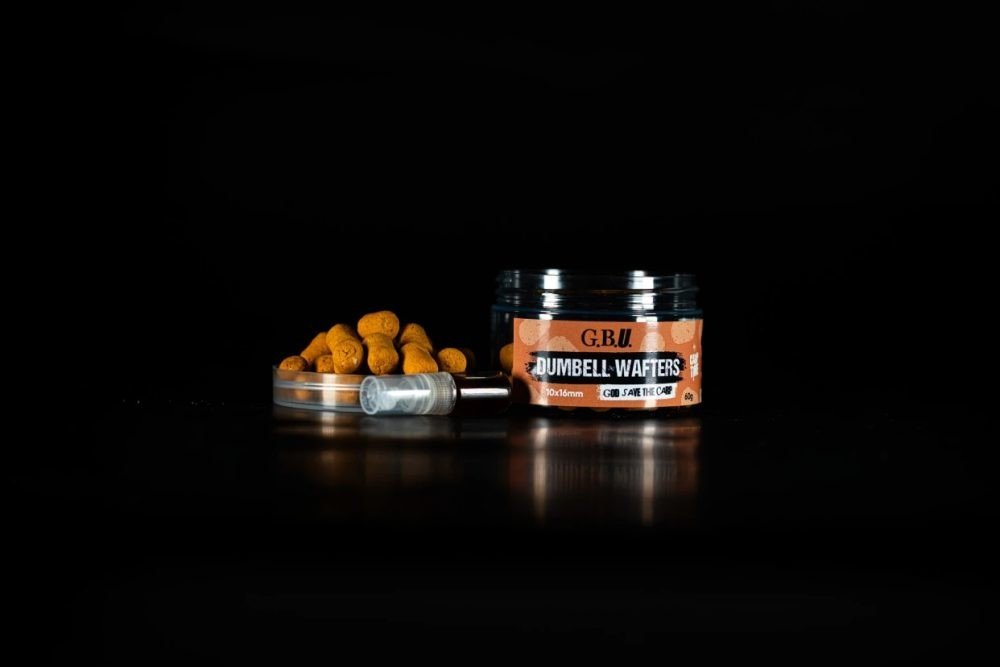 DUMBELL WAFTERS jsou skvělou nástrahou se širokým spektrem využití. Obecně jsou malé nástrahy pro kapra mnohem přirozenější a díky neutrálně vyváženému provedení se mu waftersky velmi snadno nasávají. Při výrobě jsem šel zase svoji cestou a nevytvořil jsem pouze esencí ovoněnou "ořezanou" plovoucí směs, ale použil jsem řadu surovin, které jsou obsaženy i v základových směsích mého boilies a to jak sypké, tak tekuté podobě. Nachází se v nich směsi koření, belachanový prášek, termostabilní játrový prášek, sypké a tekuté proteiny, extrakty z mořských živočichů, prostě jsem se snažil vytvořit další skvělou nástrahu a myslím, že se mi to podařilo.
