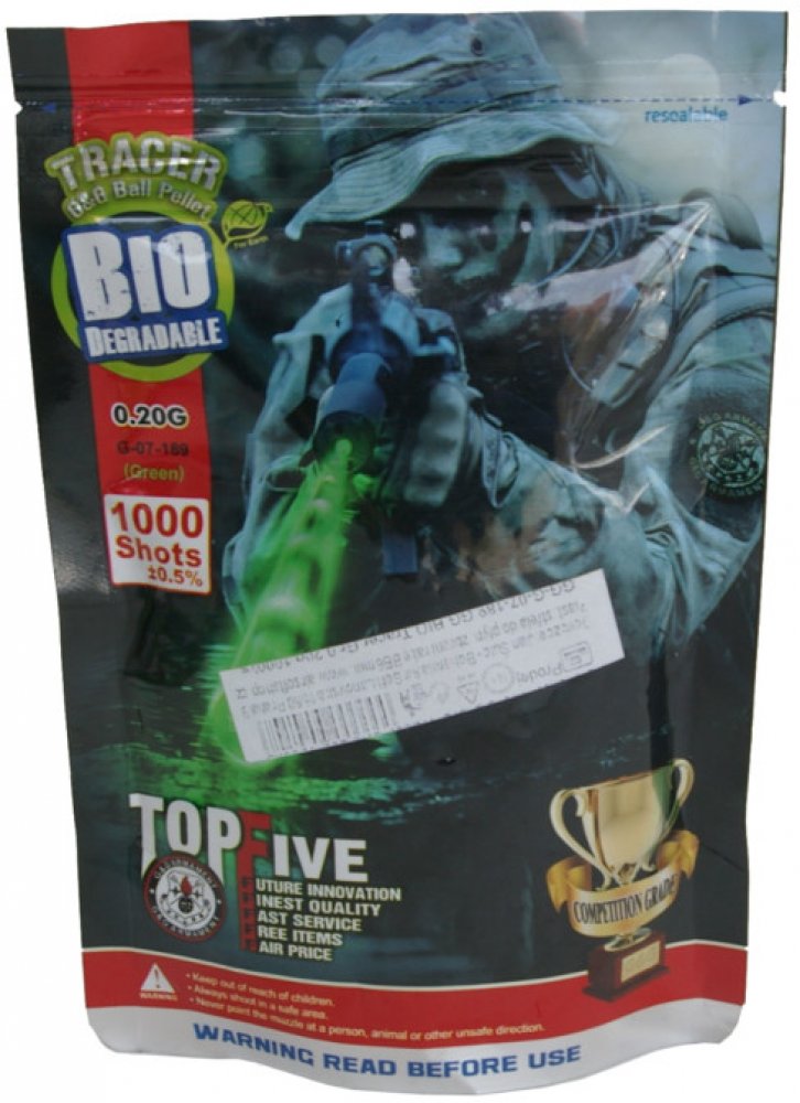 Kuličky vyráběné firmou G&G Armament jsou velmi kvalitní BIO kuličky vyrobené na Taiwanu pro střelbu v noci. Díky nasvětlovacím tlumičům či zásobníkům dokáží v noci světélkovat a zvýšit tak požitek z noční hry. V přírodě se rozloží během 2 let.
