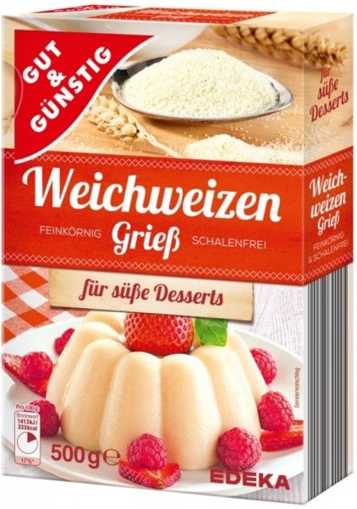 jemnozrnný a bez slupekna sladké dezertynutriční informacePrůměrné nutriční hodnotykaždých 100 ml nebo gna porci RM na 100 ml nebo g nebo na porciKalorická hodnota v kJ1,413.0017Kalorická hodnota v kcal333.0017Tuk v g0,801Tuk, z toho nasycené mastné kyseliny vg0.10 1Sacharidy vg69,0027Sacharidy, včetně cukru vg0,80 1Vlákno vg4.00Vejce bílé vg10.5021Sůl v g0,00300 1 RM = referenční množství pro průměrného dospělého (8 400 kJ / 2 000 kcal)Obsahuje následující nebezpečné alergenyPšenice a výrobky zní Obiloviny obsahující lepek a výrobky z nichAdresa:EDEKA ZENTRALE AG Co. KGNew-York-Ring 6D-22297 Hamburg