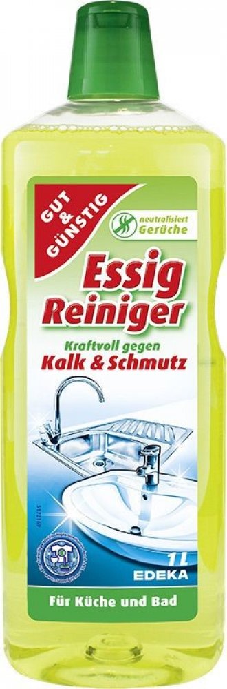 G&G Essig Reiniger 1L kombinuje jednoduchost použití s účinností při odstraňování vodního kamene. Jde o dostupný a spolehlivý čistič koupelny značky Gut & Günstig, který dobře funguje v každodenním provozu domácnosti. Pokud hledáte čistič na vodní kámen, který funguje a je snadno dostupný, tento produkt stojí za zvážení.