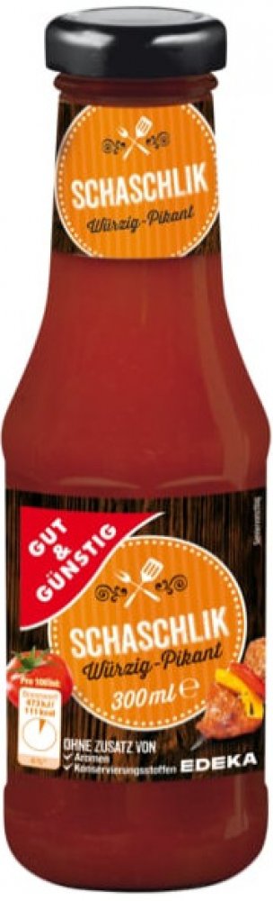 Složení: 32% rajčatový protlak, cukr, vinný ocet, modifikovaný škrob, sůl, koření, zahušťovadlo: guma guar, kyselina citronová, karamel.
